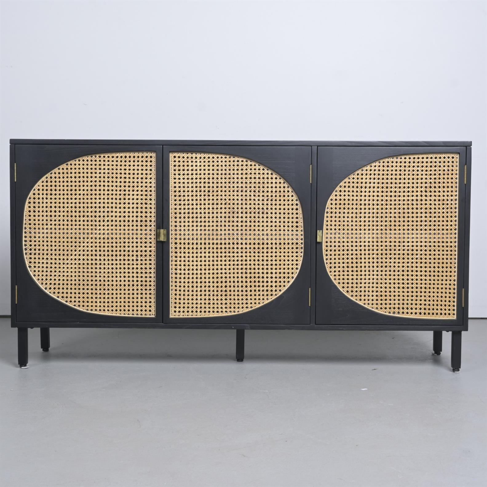 A CONTEMPORARY SIDEBOARD WITH RATTAN DOORS (160H X 81W X 40D CM) (THIS ITEM MUST BE REMOVED BY CARRIERS AT THE CUSTOMER'S EXPENSE. LEONARD JOEL STAFF CANNOT ASSIST CARRYING THIS ITEM)