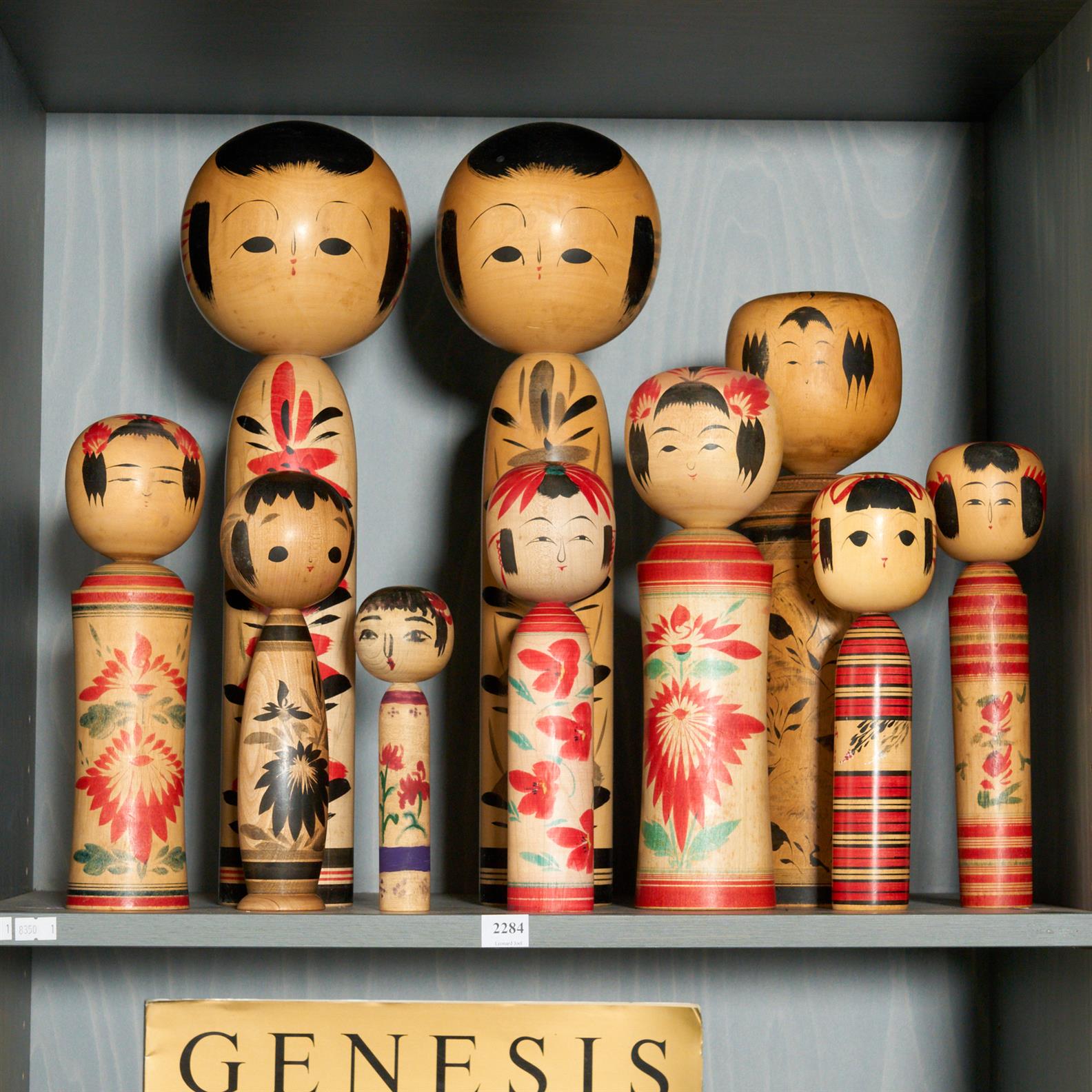 A COLLECTION OF TEN JAPANESE HAND PAINTED WOODEN KOKESHI DOLLS H.45CM (TALLEST)