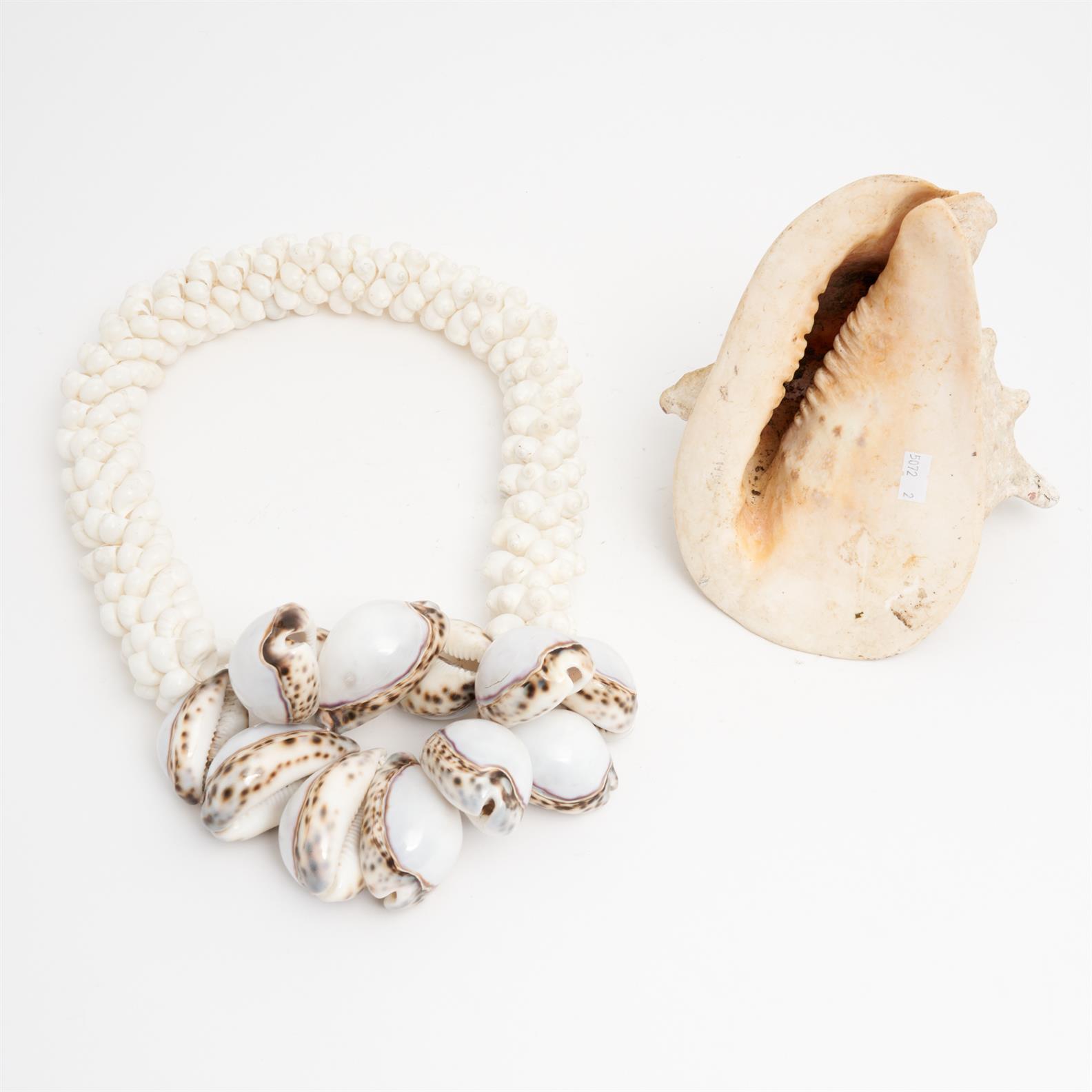 A CONCH SHELL TOGETHER WITH A SHELL NECKLACE L.22CM (SHELL)