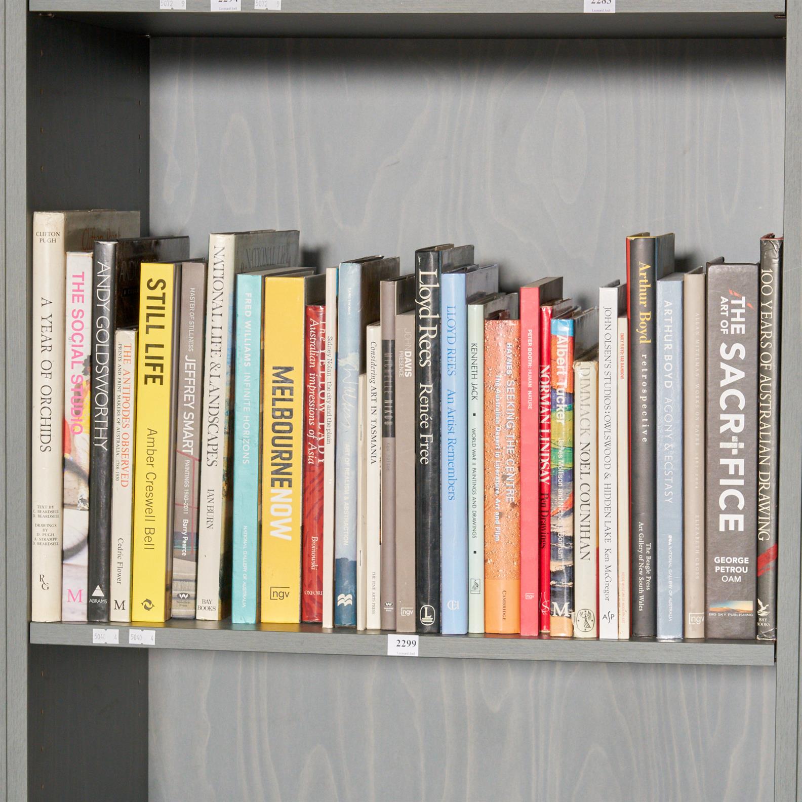 A SHELF OF AUSTRALIAN ART REFERENCE INCLDING MOLLISON & BONHAM 'ALBERT TUCKER', CLIFTON PUGH 'A YEAR OF ORCHIDS', PETER BROOK 'HUMAN/NATURE', ARTHUR BOYD, JEFFREY SMART AND FRED WILLIAMS