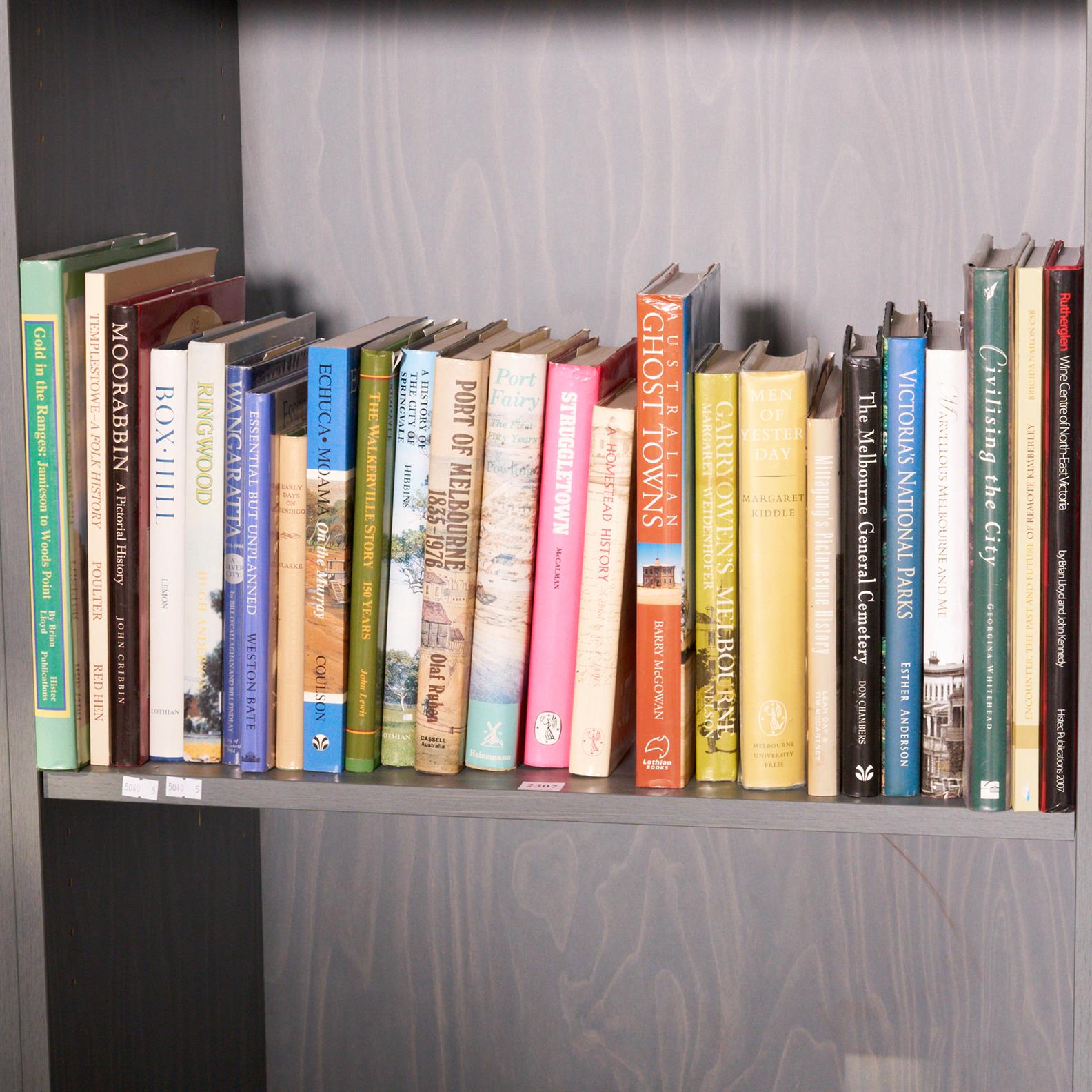 A SHELF OF LOCAL HISTORY REFERENCE BOOKS INCLUDING POWLING 'PORT FAIRY', 1ST ED, CLARKE 'EARLY DAYS ON BENDIGO', 1ST ED, PLUS HISTORIES OF BOX HILL, TEMPLESTOWE AND WALKERVILLE