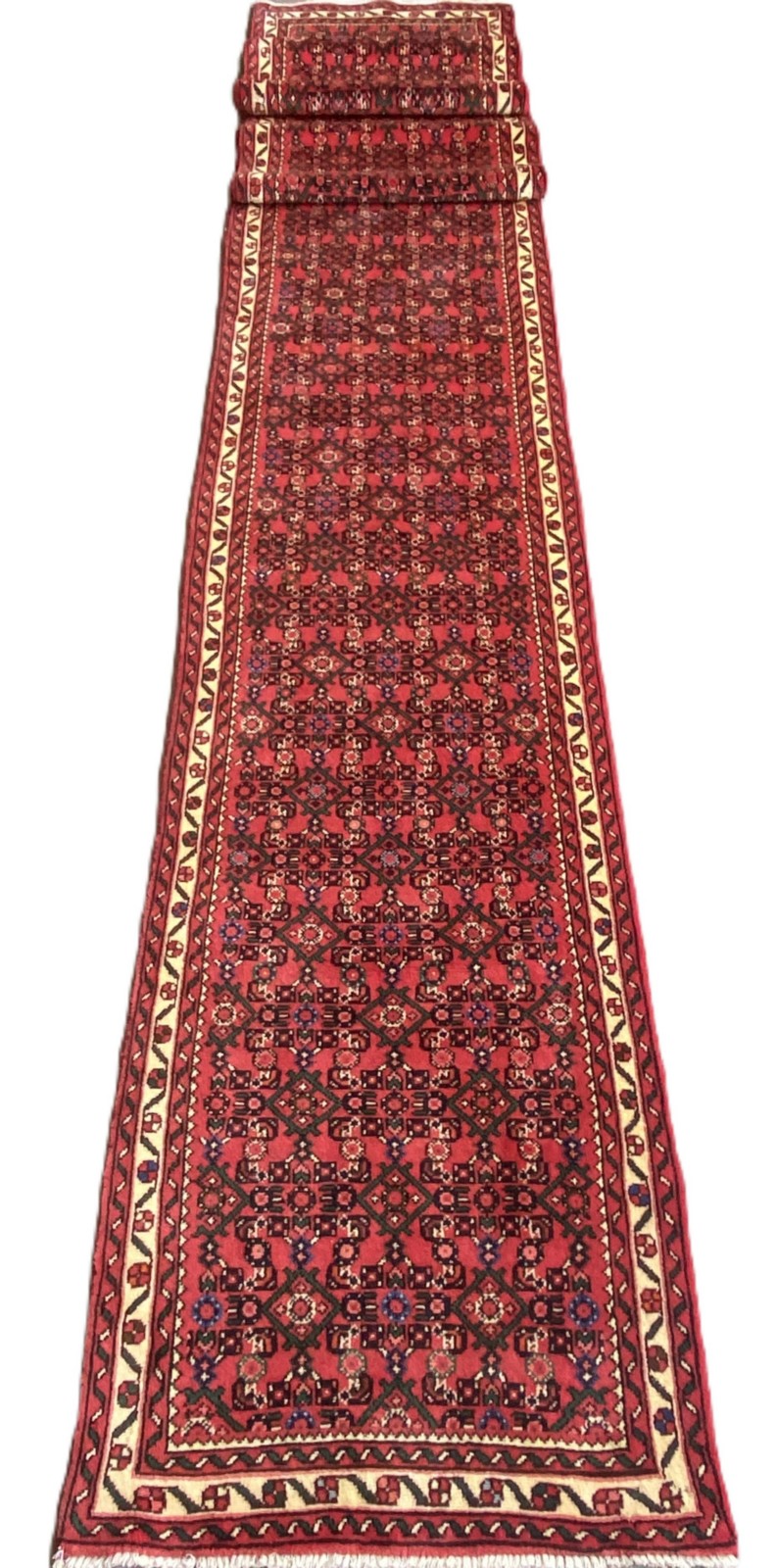 A NEW PLUSH PILE PERSIAN HOSSAINABAD LONG RUNNER (603 X 83 CM)