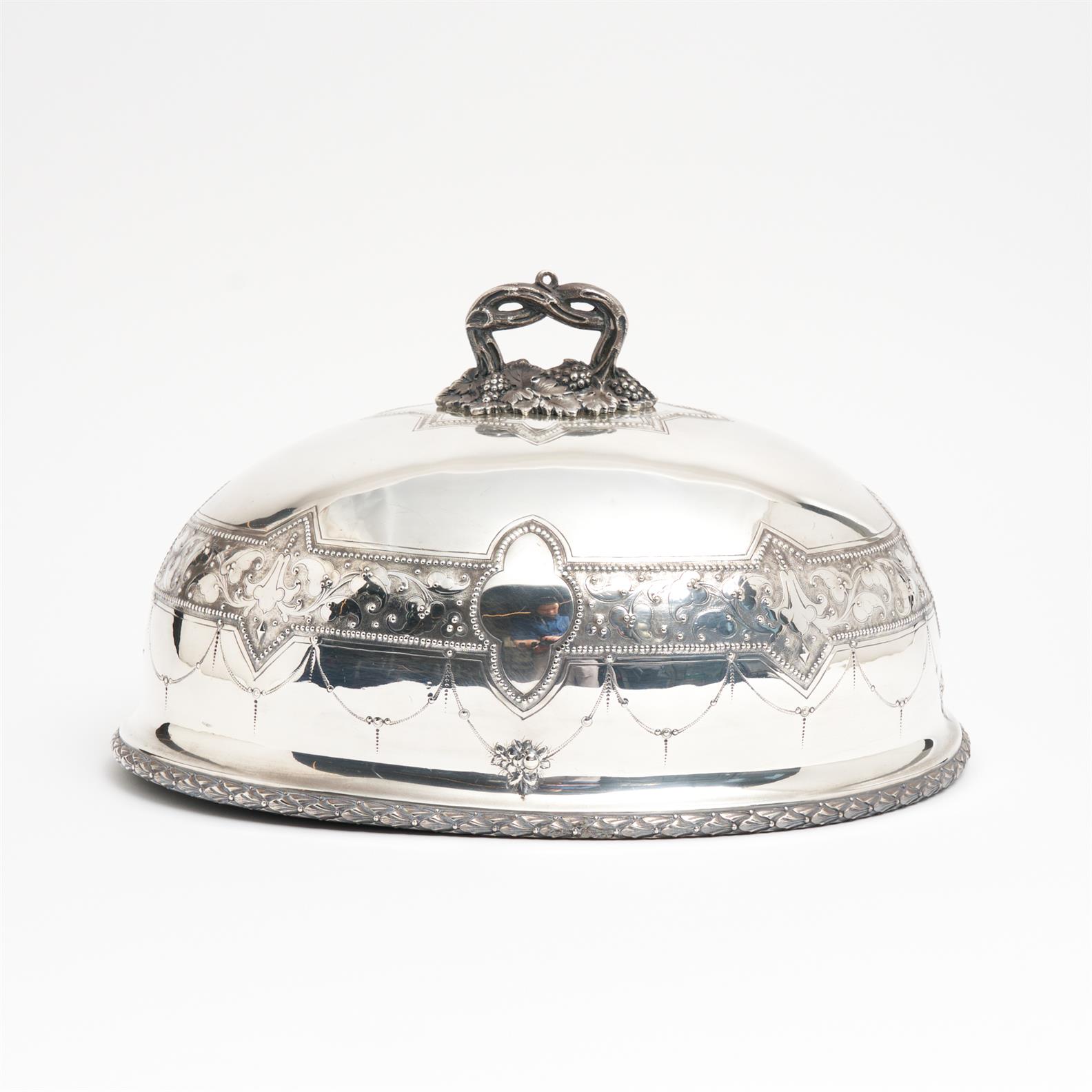 A VICTORIAN SILVER PLATED CLOCHE W.36CM