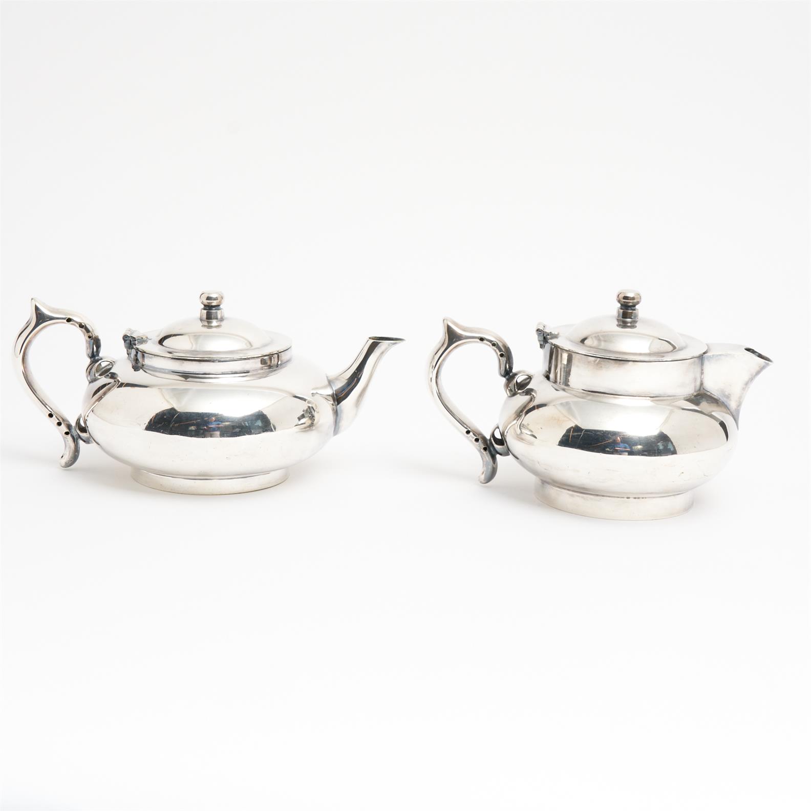 A ROBUR 'PERFECT' SILVER PLATE TEAPOT WITH INSERT, TOGETHER WITH A MATCHING HOT WATER POT W.23CM