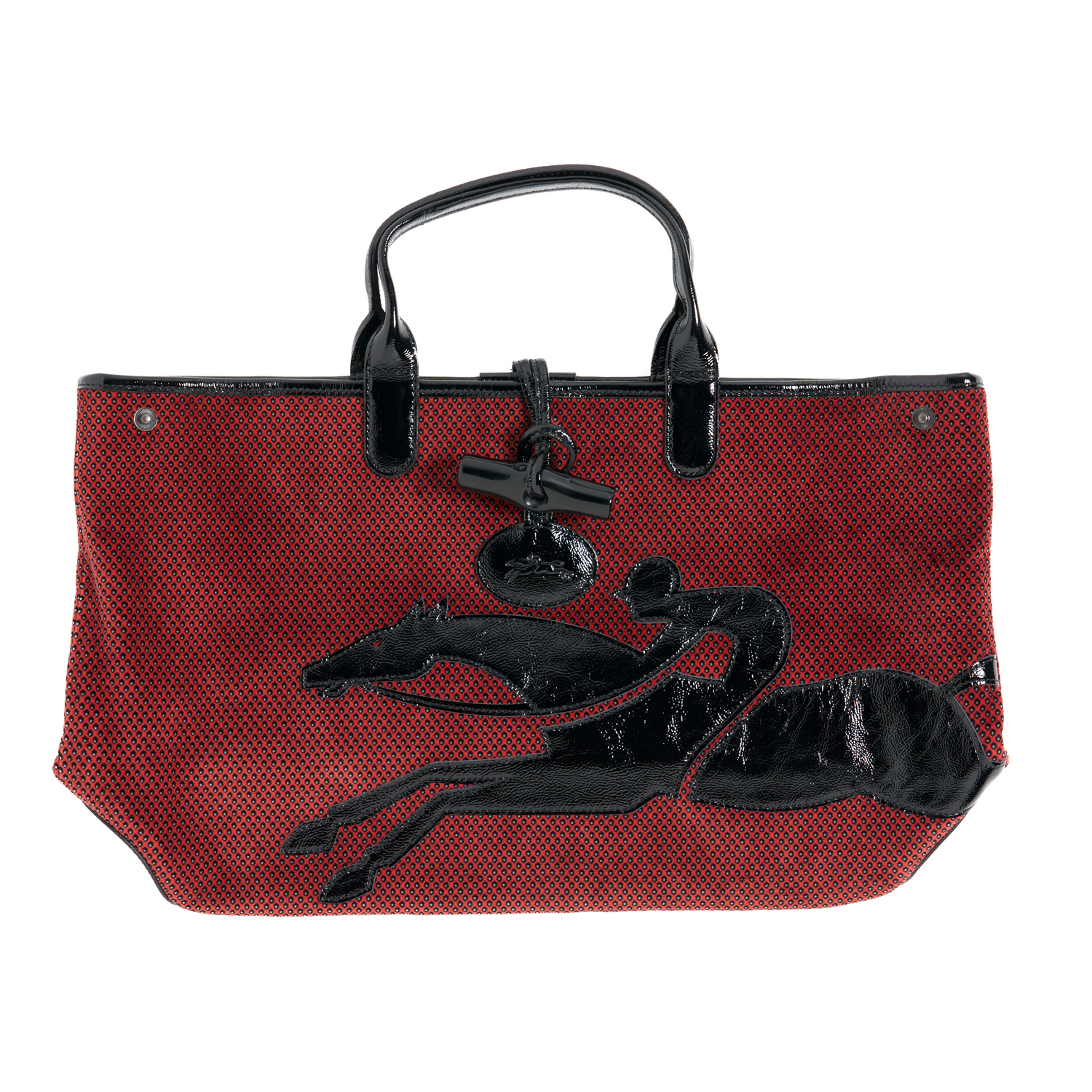 MCM LARGE LIZ REVERSIBLE SHOPPER TOTE RED, STYLED IN RED AND BLACK MONOGRAM PVC WITH GOLD TONE HARDWARE, WITH FLAT SHOULDER STRAPS AND LEATHER TRIM, TEXTILE PATTERN TO INTERIOR, INCLUDING A DETACHABLE MATCHING POCHETTE, 17.5 X 12.2CM.