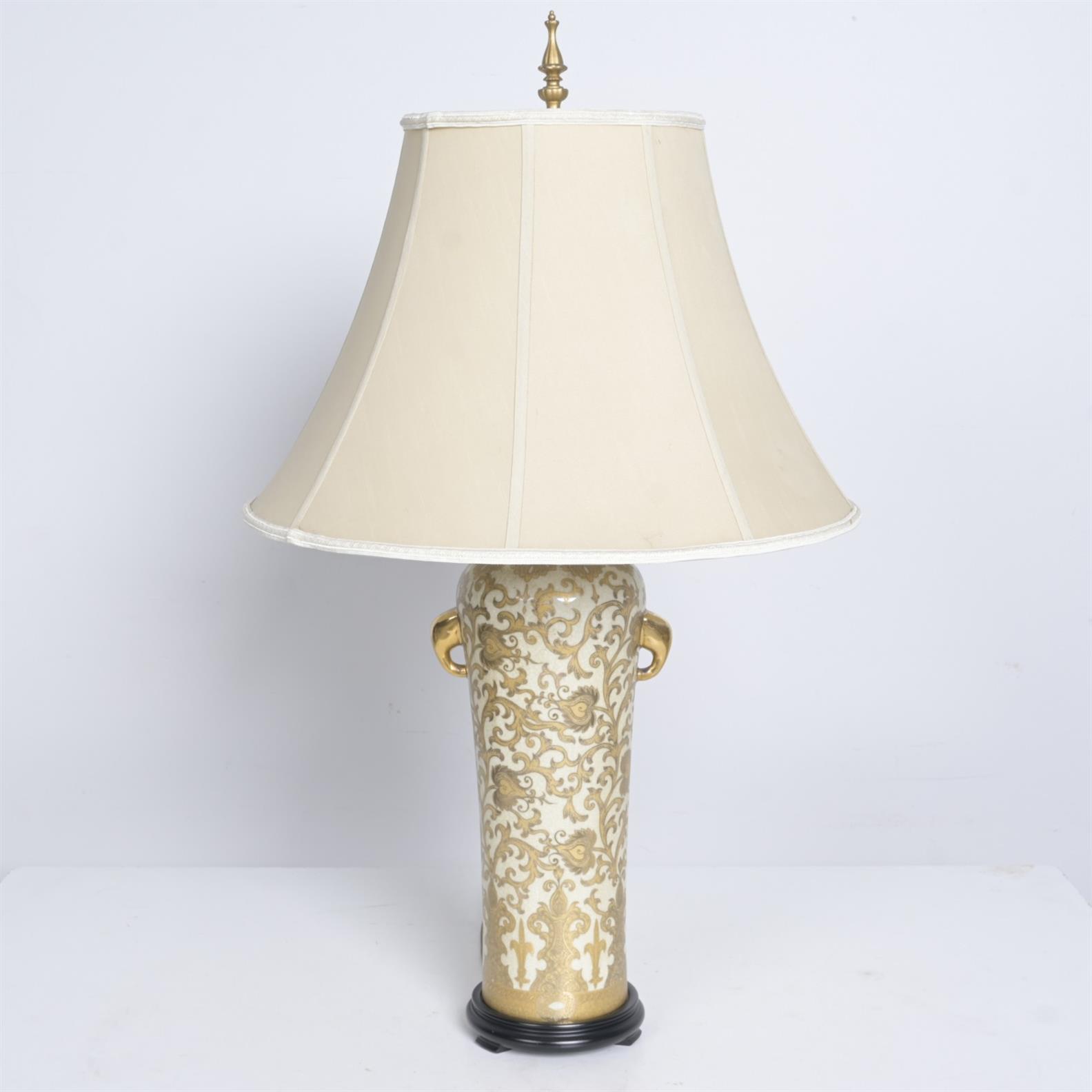 A CERAMIC TABLE LAMP WITH CHINESE MOTIF (90H X 55D CM)