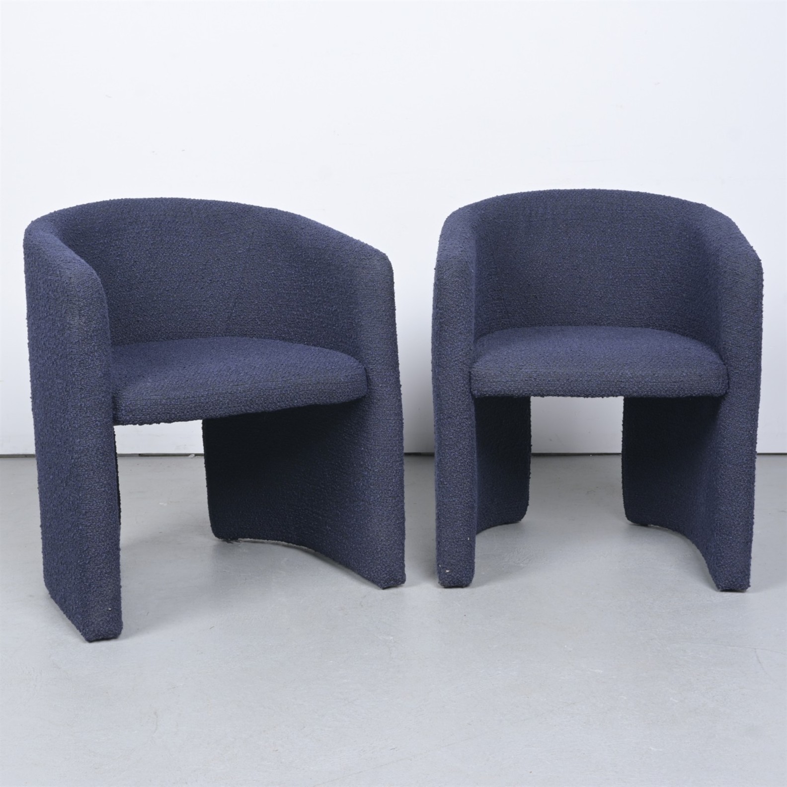 A PAIR OF GLOBE WEST ADDISON CHAIRS  IN NAVY BLUE BOUCLE UPHOLSTERY (80H X 64W X 62D CM)