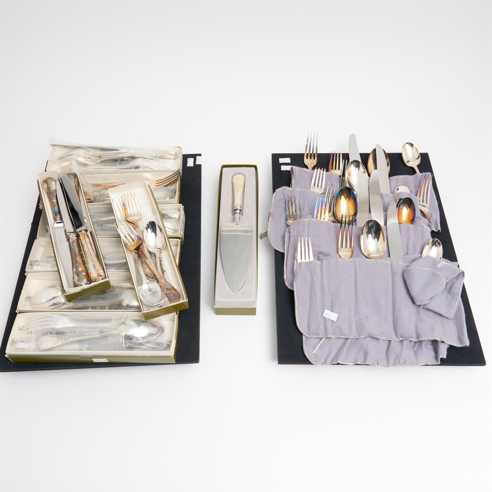 A CHRISTOFLE MARLY PATTERN 11 PLACE SETTING (FIVE PIECES PER SETTING) WITH EXTRAS INCLUDING A CAKE LIFT, SOME PLACE SETTINGS WITH ORIGINAL BOXES AND PACKAGING