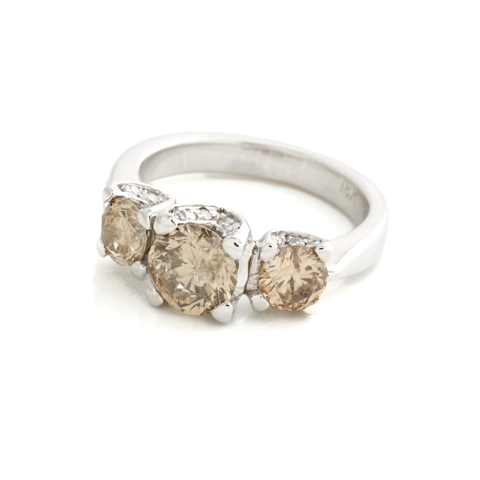 A CHAMPAGNE DIAMOND AND DIAMOND RING IN 18CT WHITE GOLD, THE CHAMPAGNE DIAMOND WEIGHING 2.03CTS, THE DIAMONDS TOTALLING 0.22CTS, SIZE K1/2, 6.1GMS, ACCOMPANIED BY A VALUATION