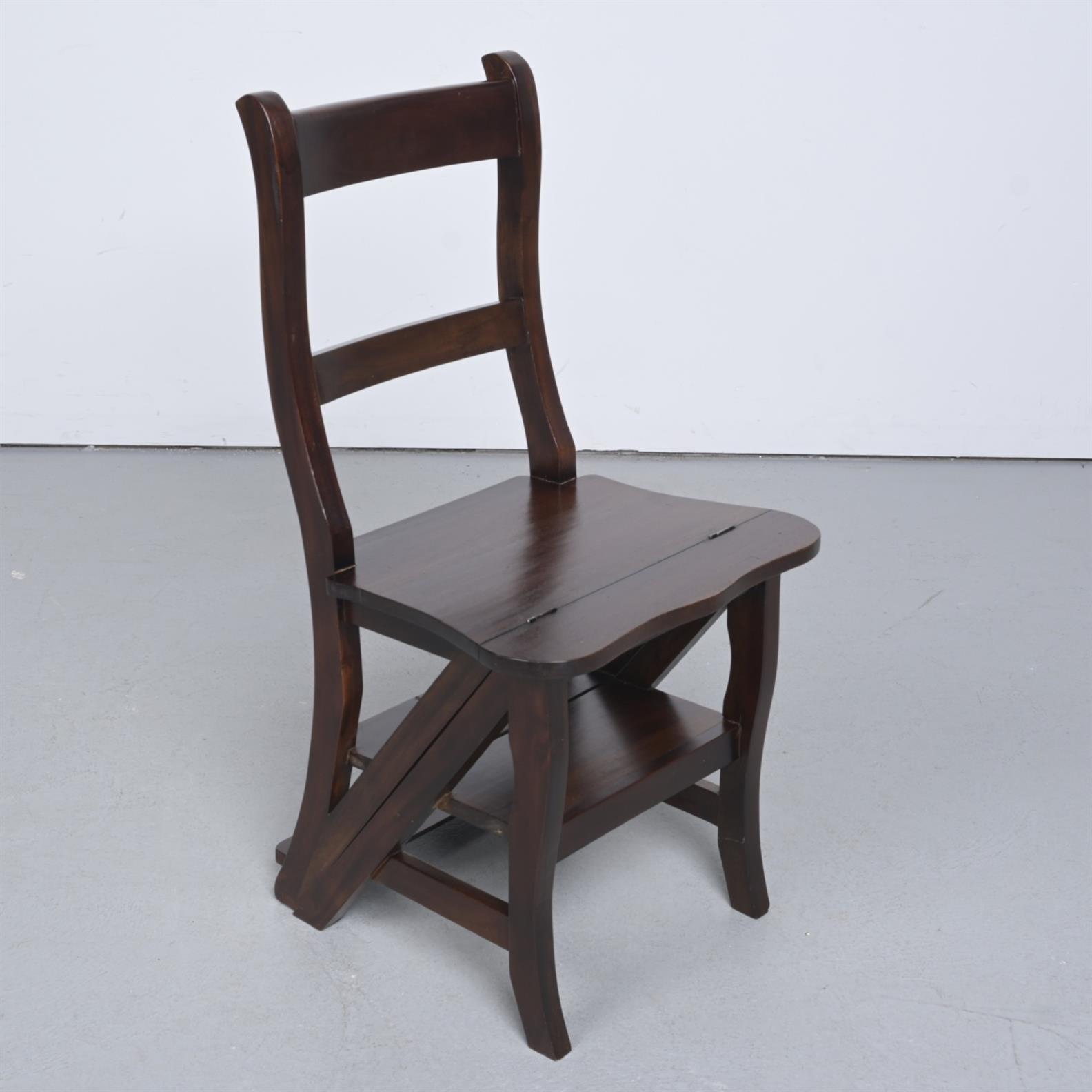A MAHOGANY METAMORPHIC LIBRARY CHAIR (77H X 45W X 50D CM)