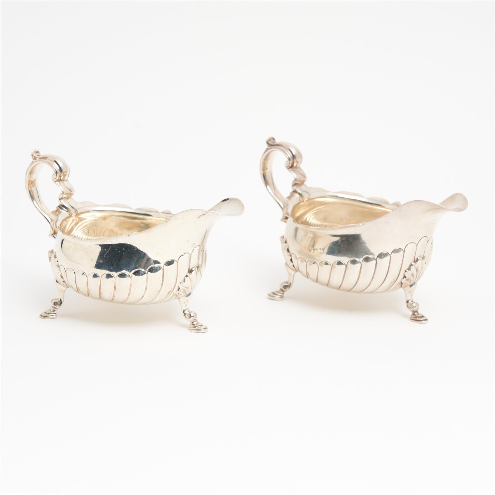 A PAIR OF STERLING SILVER SAUCE BOATS 654G L.19CM