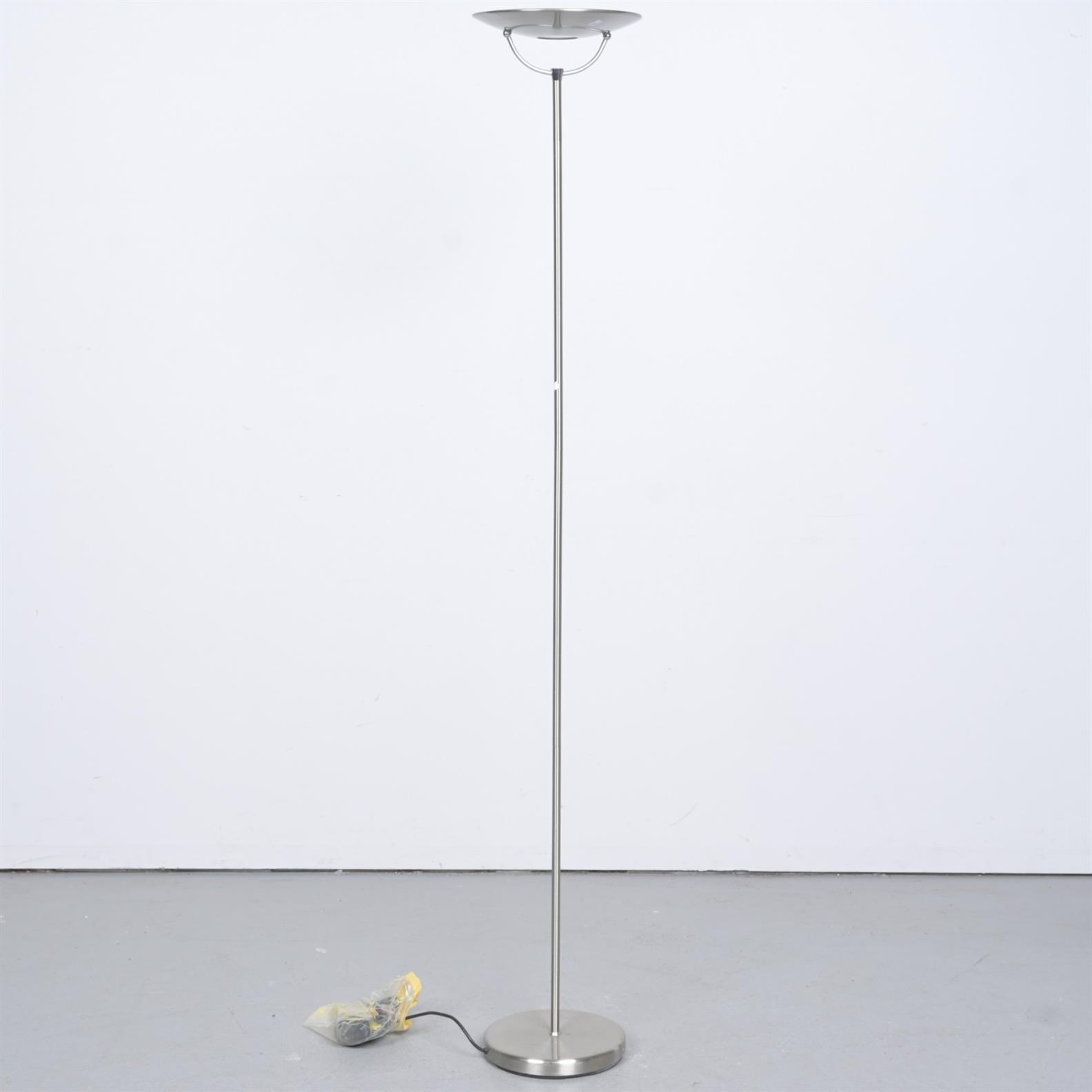 A CONTEMPORARY CHROMED METAL HALOGEN UPLIGHT (180H X 29D CM)