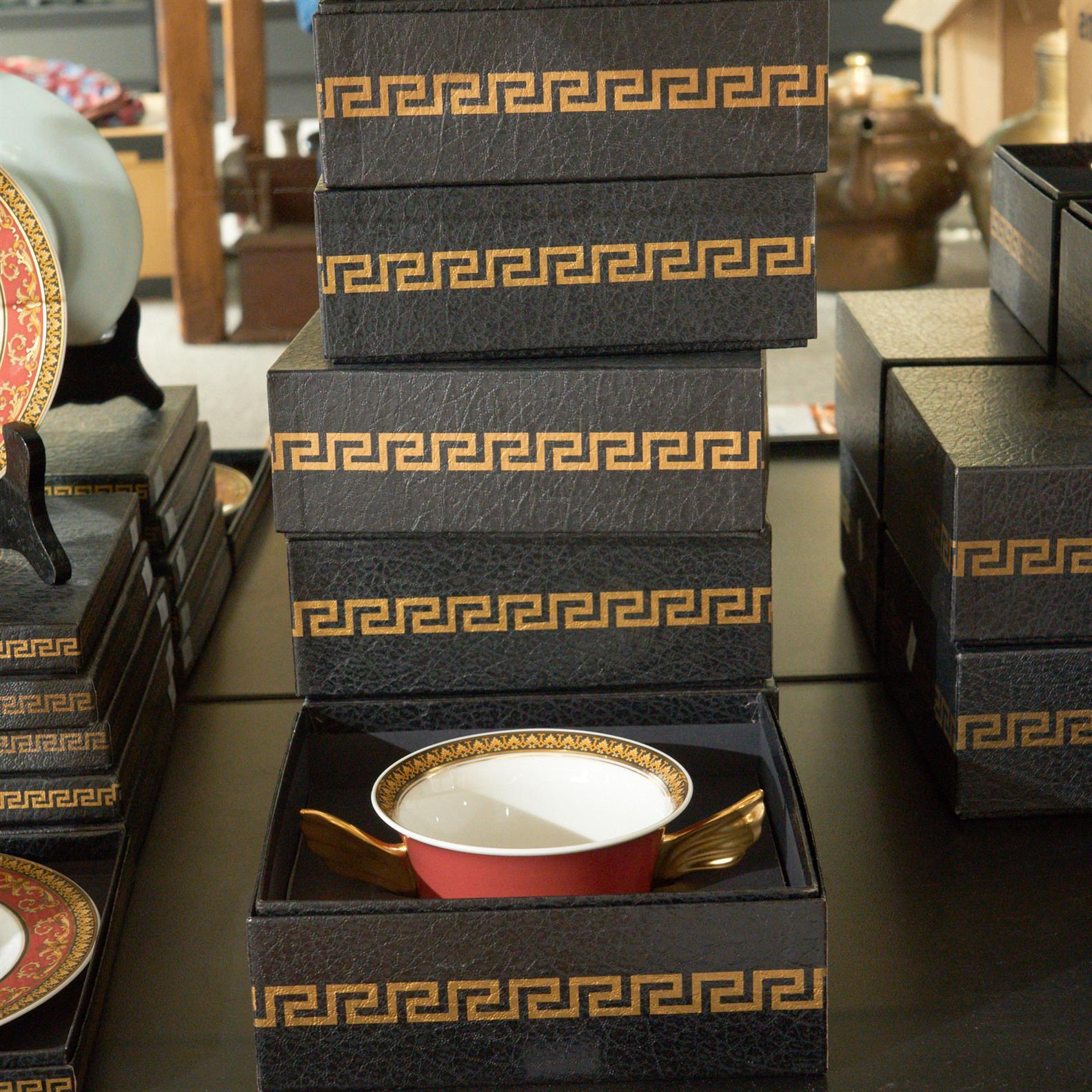 SIX ROSENTHAL STUDIO LINE X VERSACE MEDUSA TWIN HANDLED SUPPENTASSE BOWLS, IN ORIGINAL BOXES DIA.11.5CM