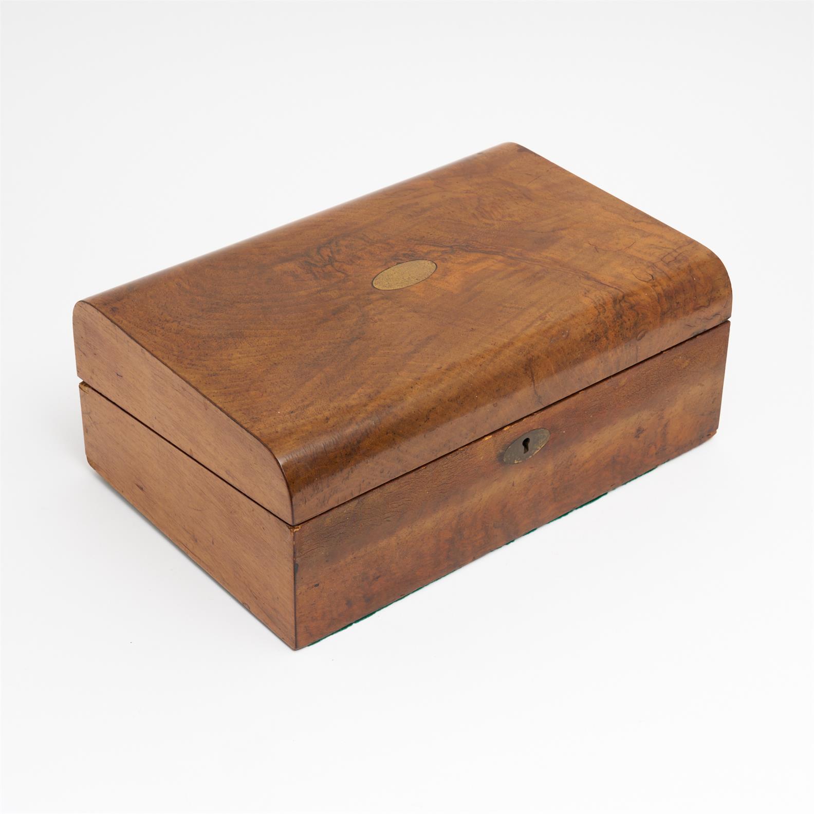 AN ANTIQUE ENGLISH WALNUT WRITING SLOPE (A/F) W.35CM