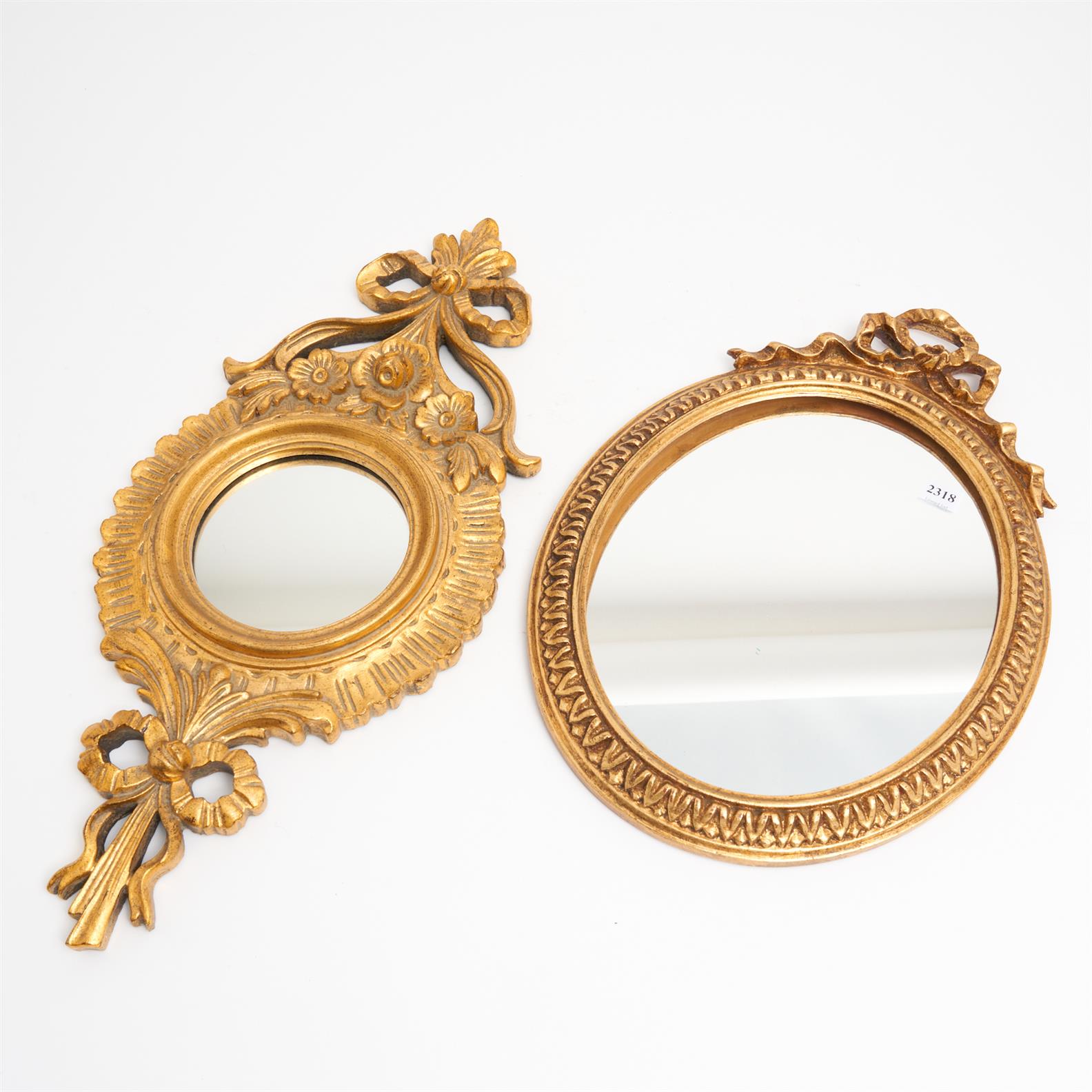 TWO GILDED OVAL AND CIRCULAR MIRRORS WITH BOW DECORATIONS H.54CM (LARGEST)