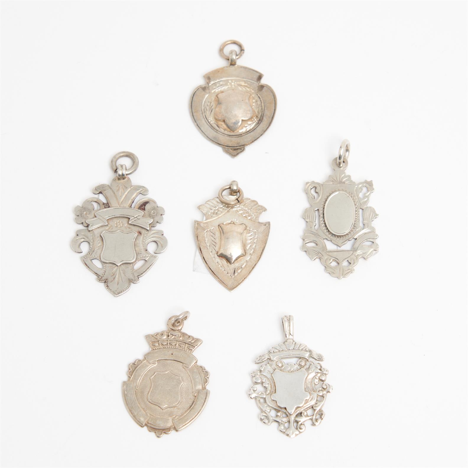 A COLLECTION OF SIX STERLING SILVER FOB MEDALLIONS H.4CM (LARGEST)