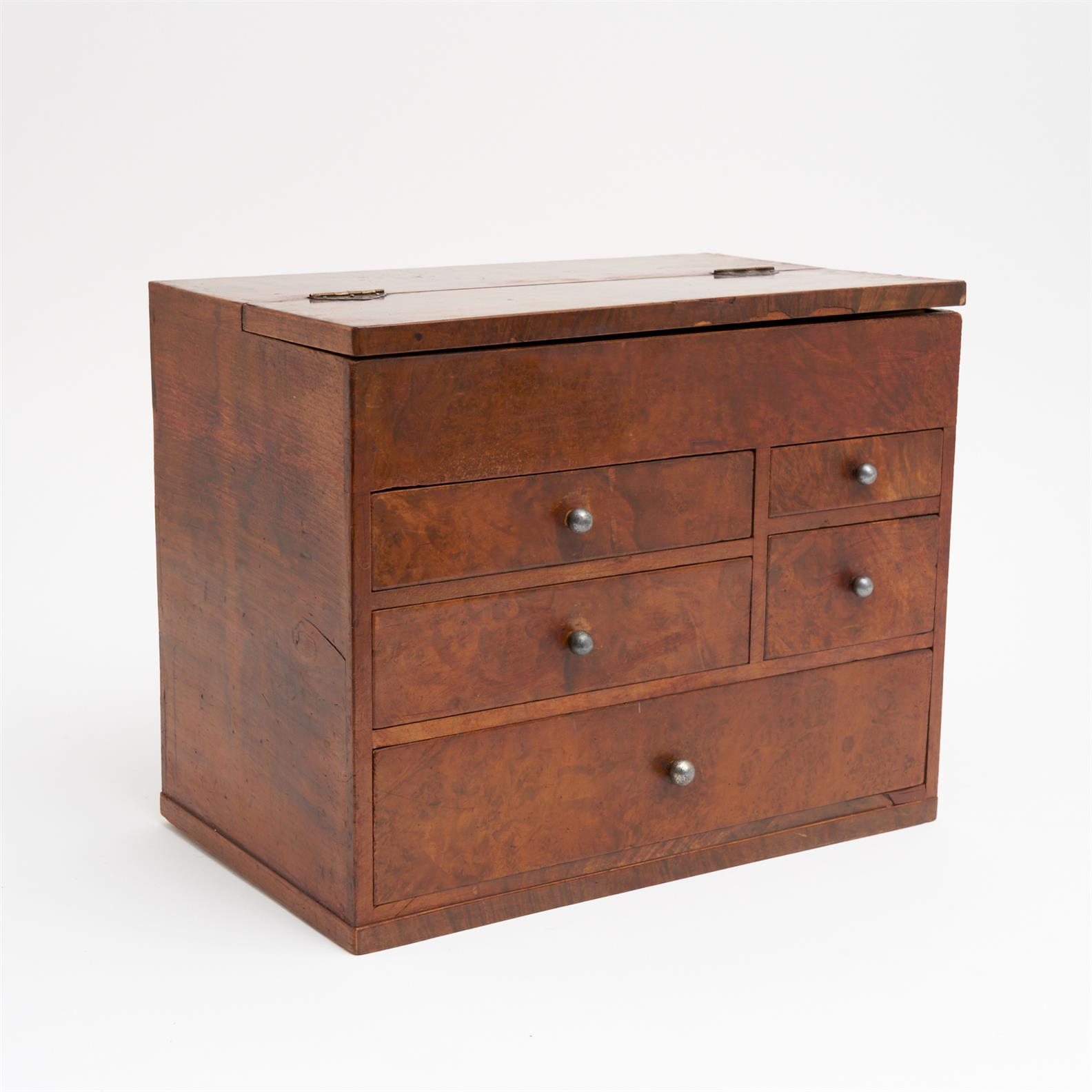 A BURR MAPLE FIVE DRAWER SEWING CHEST (A/F) W.32CM