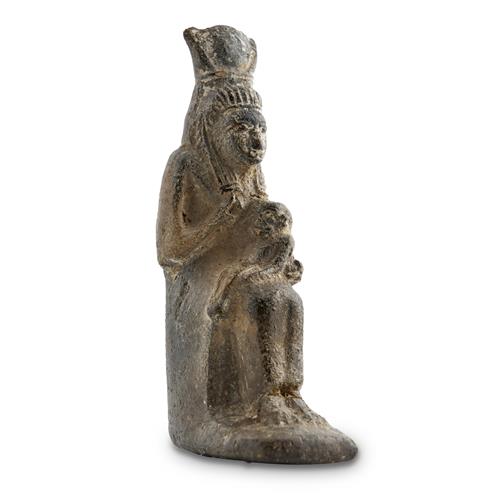 AN EGYPTIAN POTTERY STATUE OF ISIS FEEDING HORUS