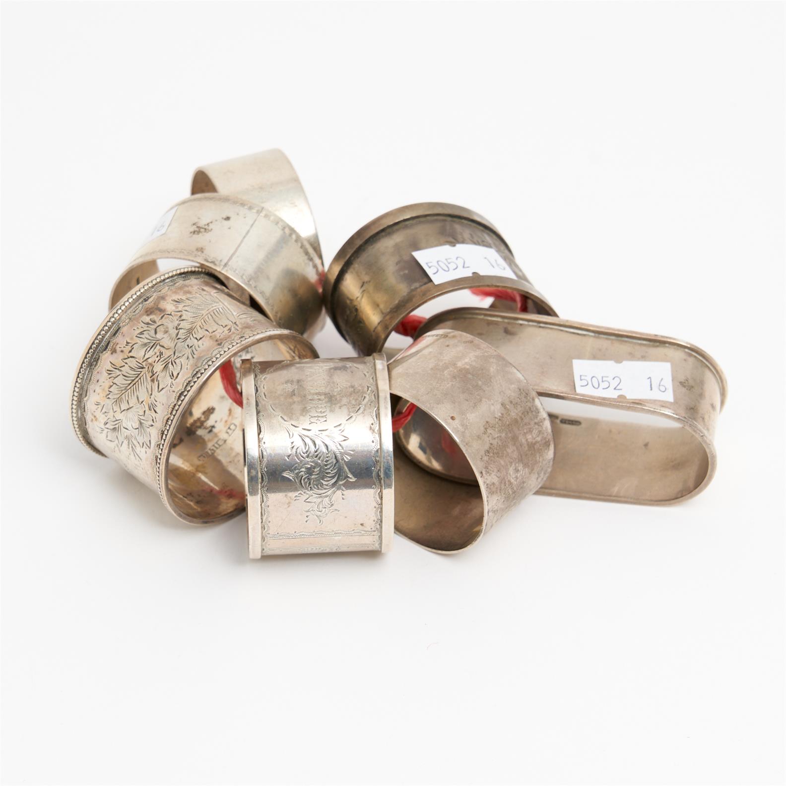 A COLLECTION OF STERLING SILVER NAPKIN RINGS, SOME WITH ENGRAVED MONOGRAMS AND PRESENTATIONS 184G
