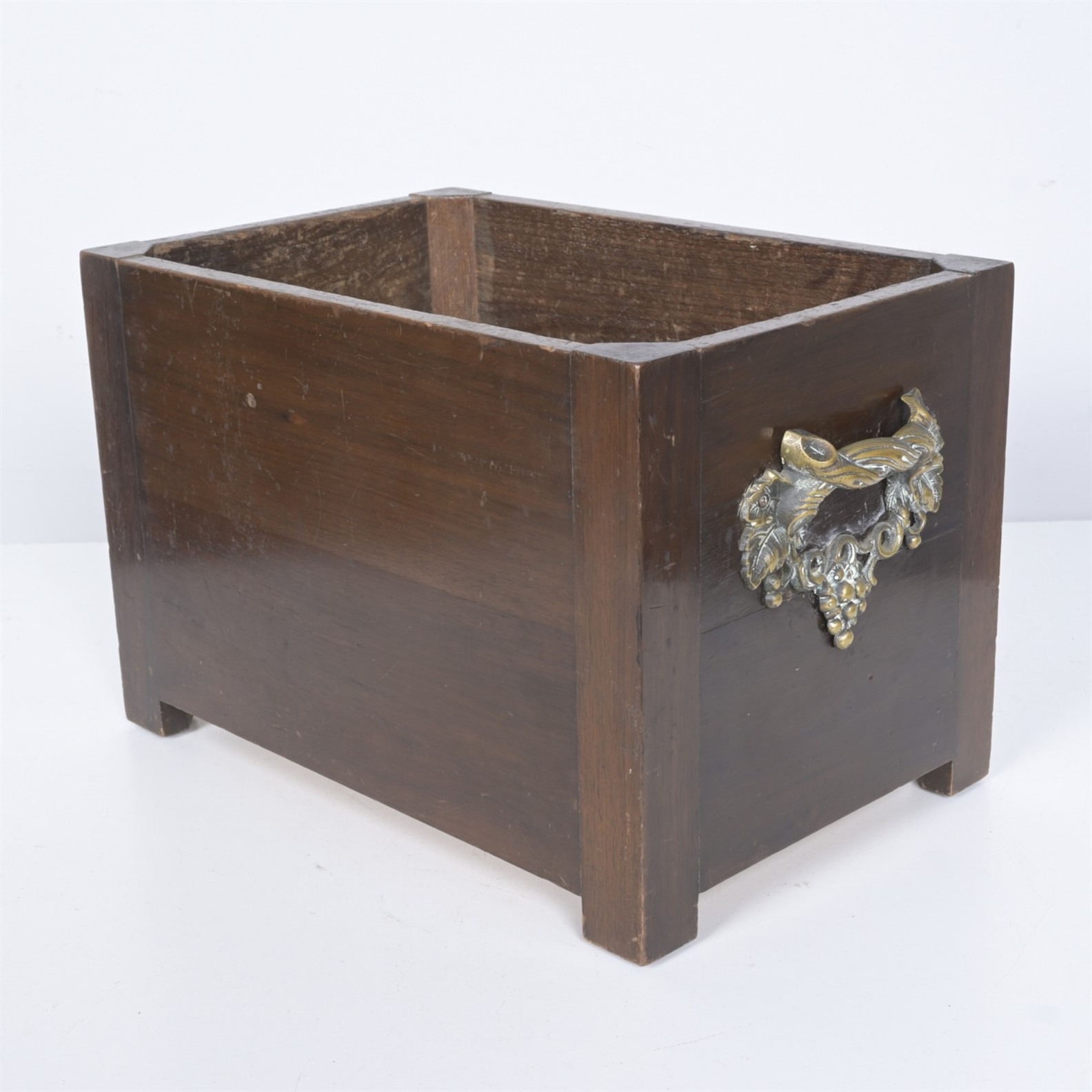 A HARDWOOD PLANTER BOX WITH BRASS HANDLES (31X 46X 31CM)