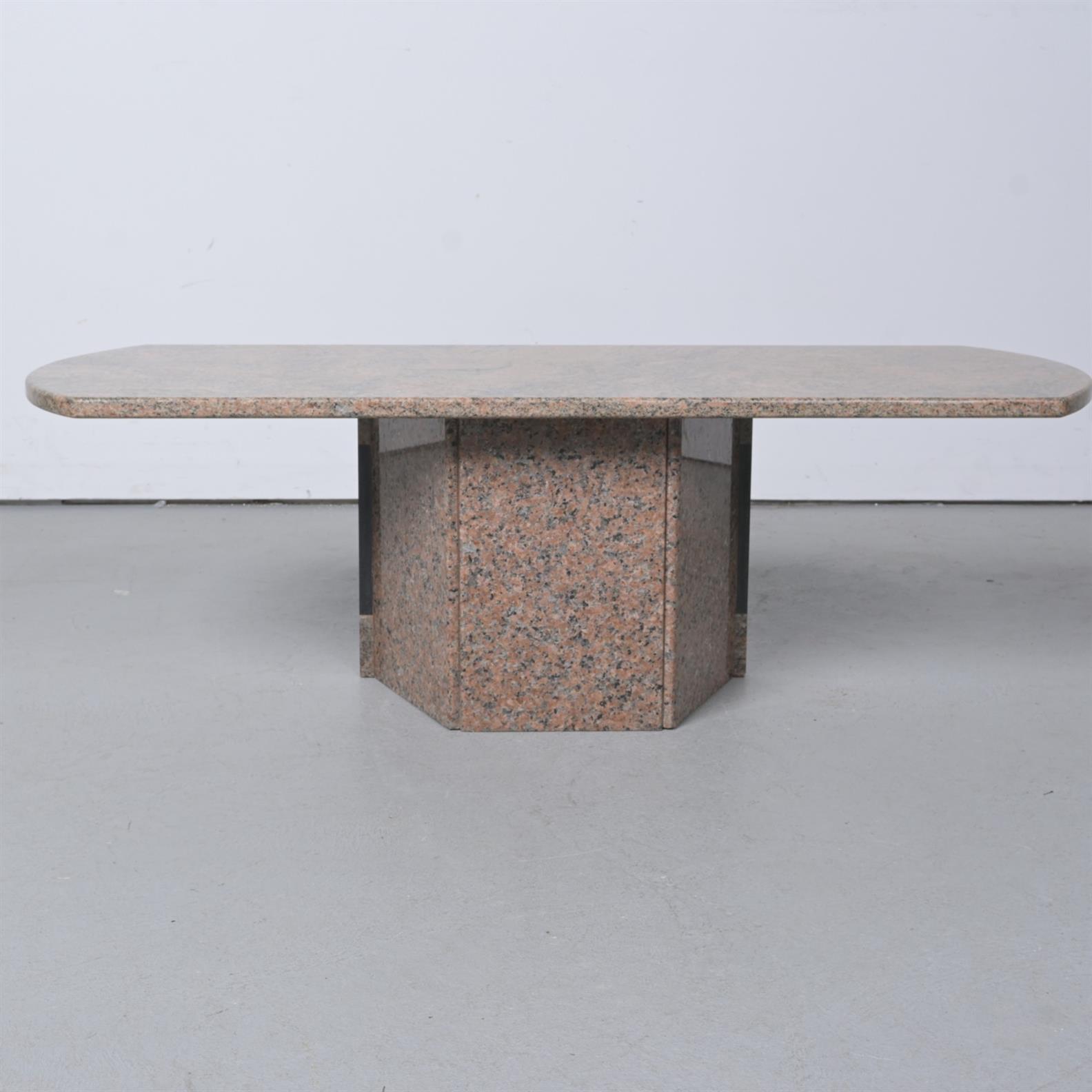 A SMALL GRANITE COFFEE TABLE (38H X 115W X 43D CM)