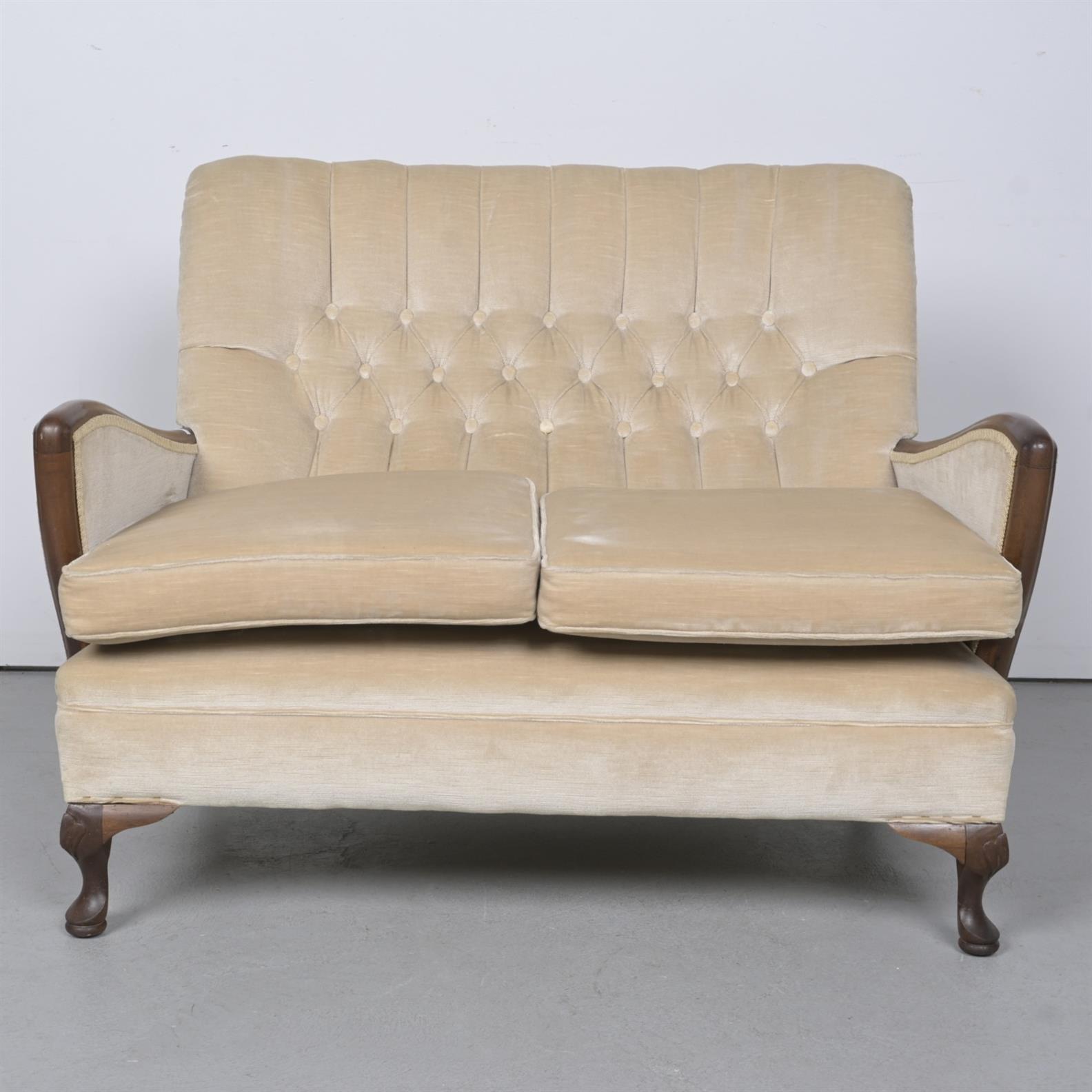 A TWO SEAT SOFA (87CM H X 111 CM W X 80D CM) (THIS ITEM MUST BE REMOVED BY CARRIERS AT THE CUSTOMER'S EXPENSE. LEONARD JOEL STAFF CANNOT ASSIST CARRYING THIS ITEM)