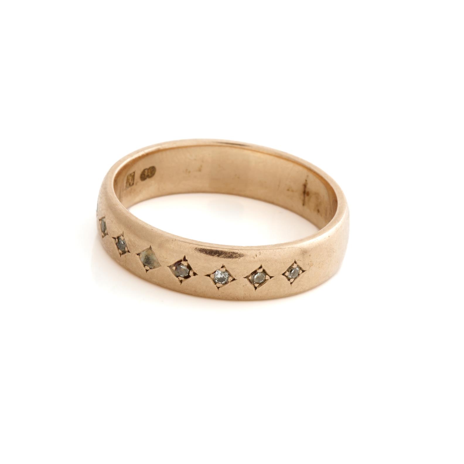A DIAMOND BAND IN 9CT GOLD, SIZE V 1/2, 6.0GMS