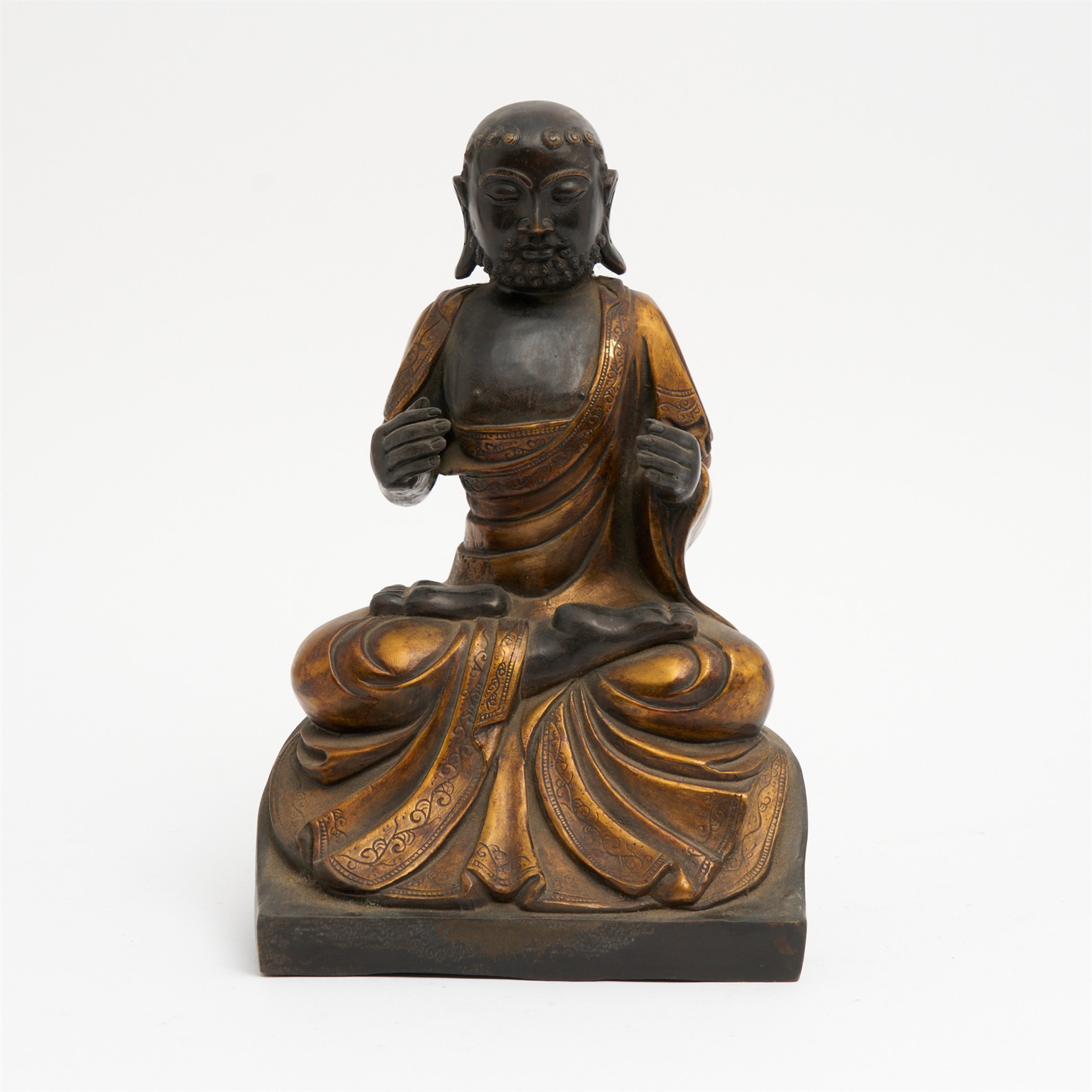 A GILT BRONZE FIGURE OF SIDDHARTHA GAUTAMA BUDDHA SEATED IN MEDITATION, 20TH CENTURY H.32CM