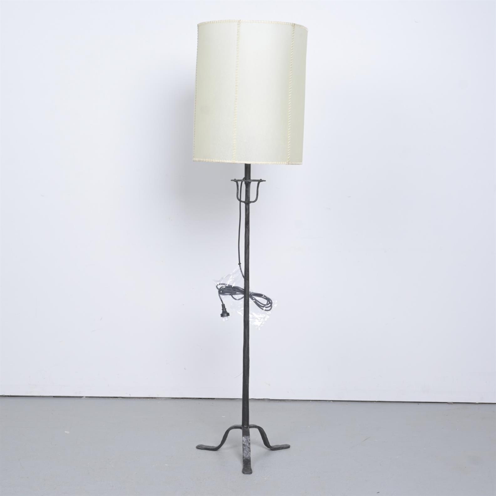 A WROUGHT IRON ANDREW GOURLAY-STYLE STANDARD LAMP (178H X 40D CM)