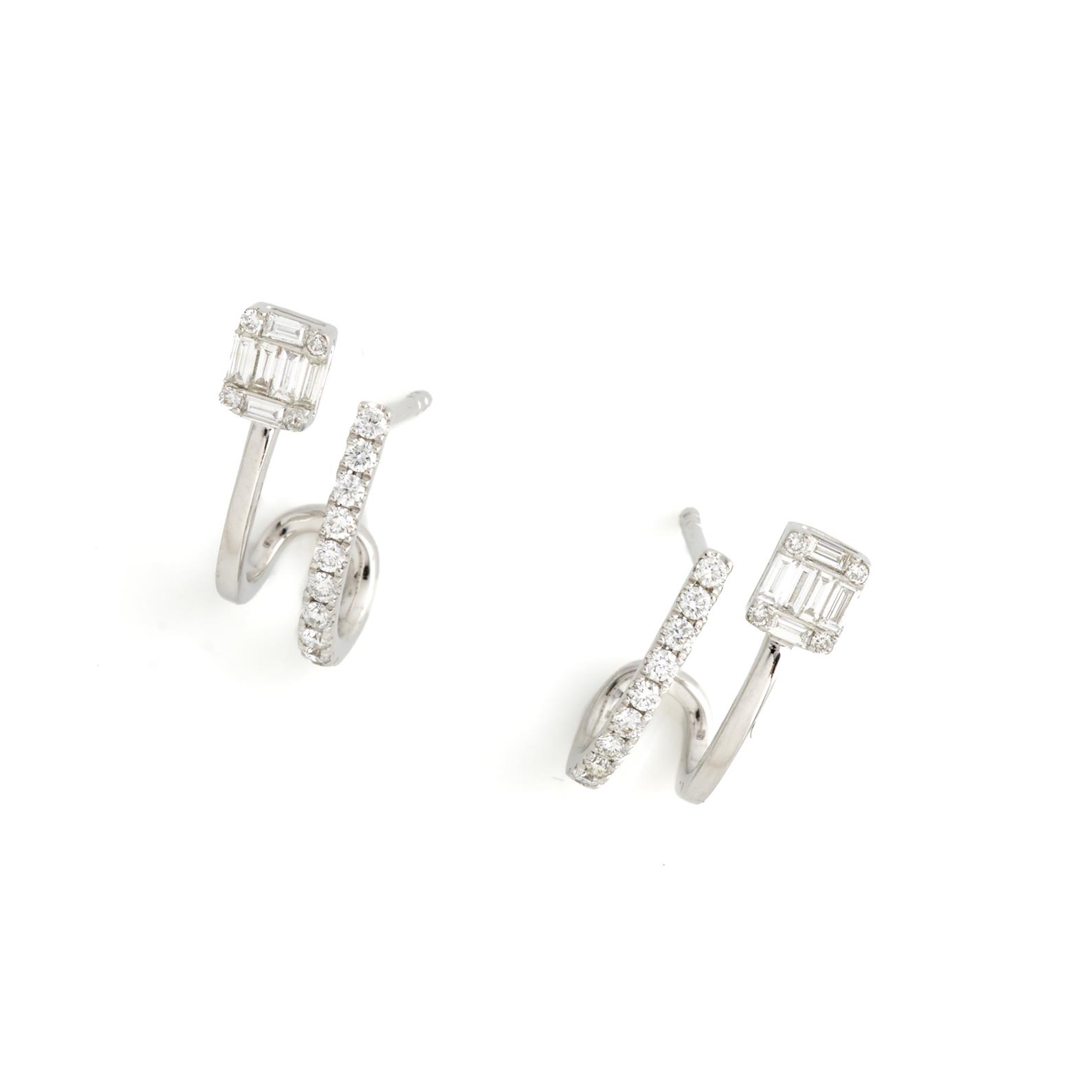 A PAIR OF DIAMOND HUGGIE EARRINGS IN 18CT GOLD, THE DIAMONDS TOTALLING 0.58CTS, TO POST AND BUTTERFLY FITTINGS, 15MM