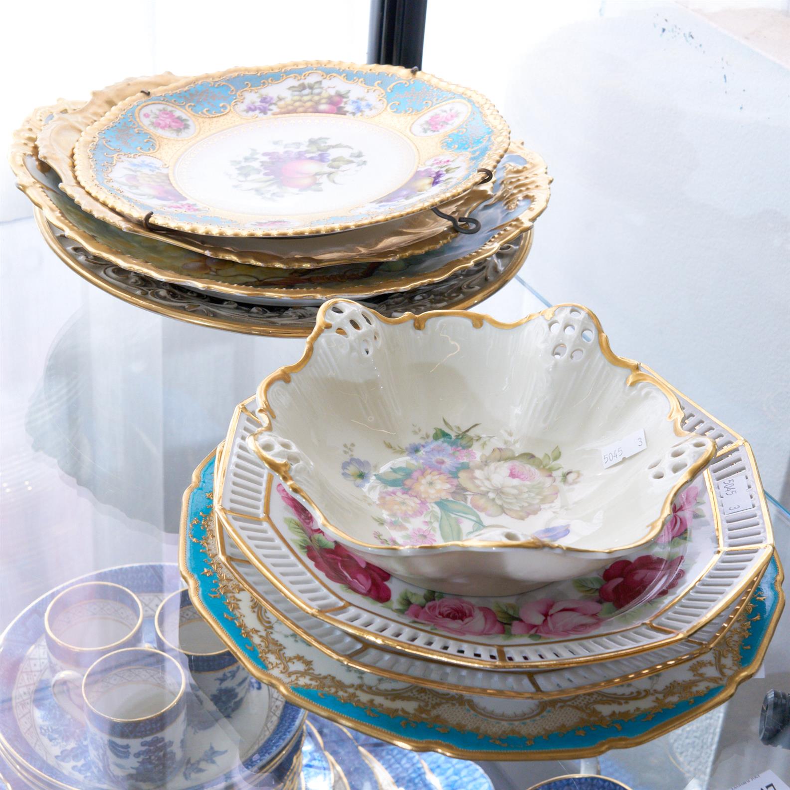 A COLLECTION OF ASSORTED FLORAL DECORATED PLATES, TOGETHER WITH ONE OTHER SMALL BOWL DIA.26CM (A/F) (LARGEST)