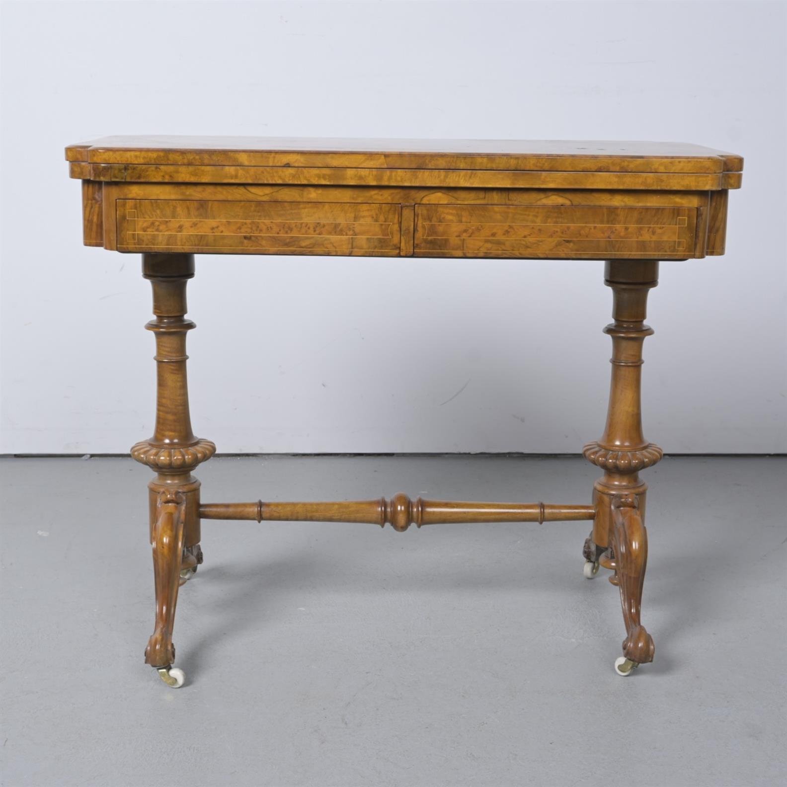 A VICTORIAN WALNUT GAMES TABLE (A/F) (72H X 88W X 46D CM)