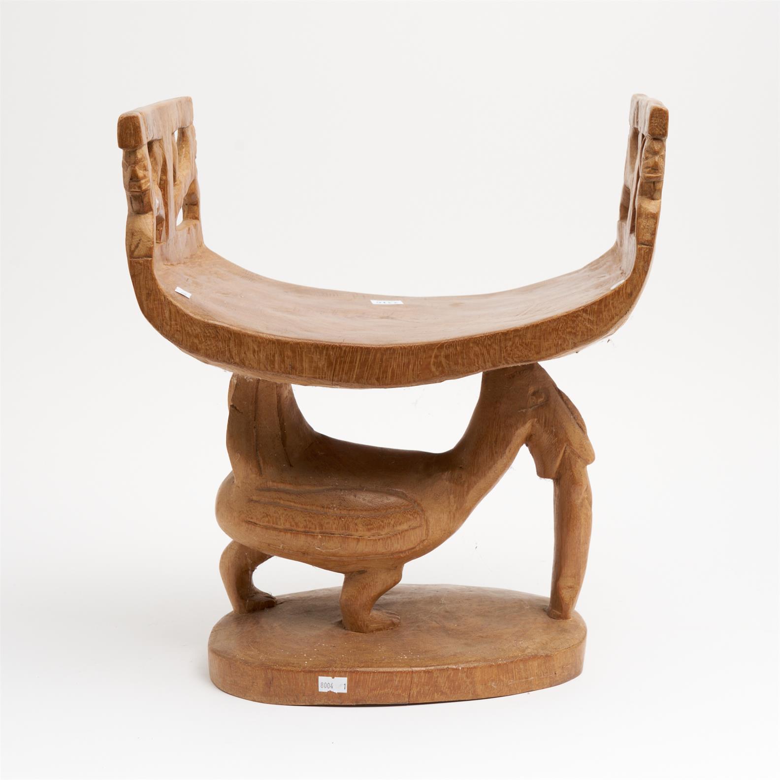 AN AFRICAN CARVED WOODEN STOOL W.39CM