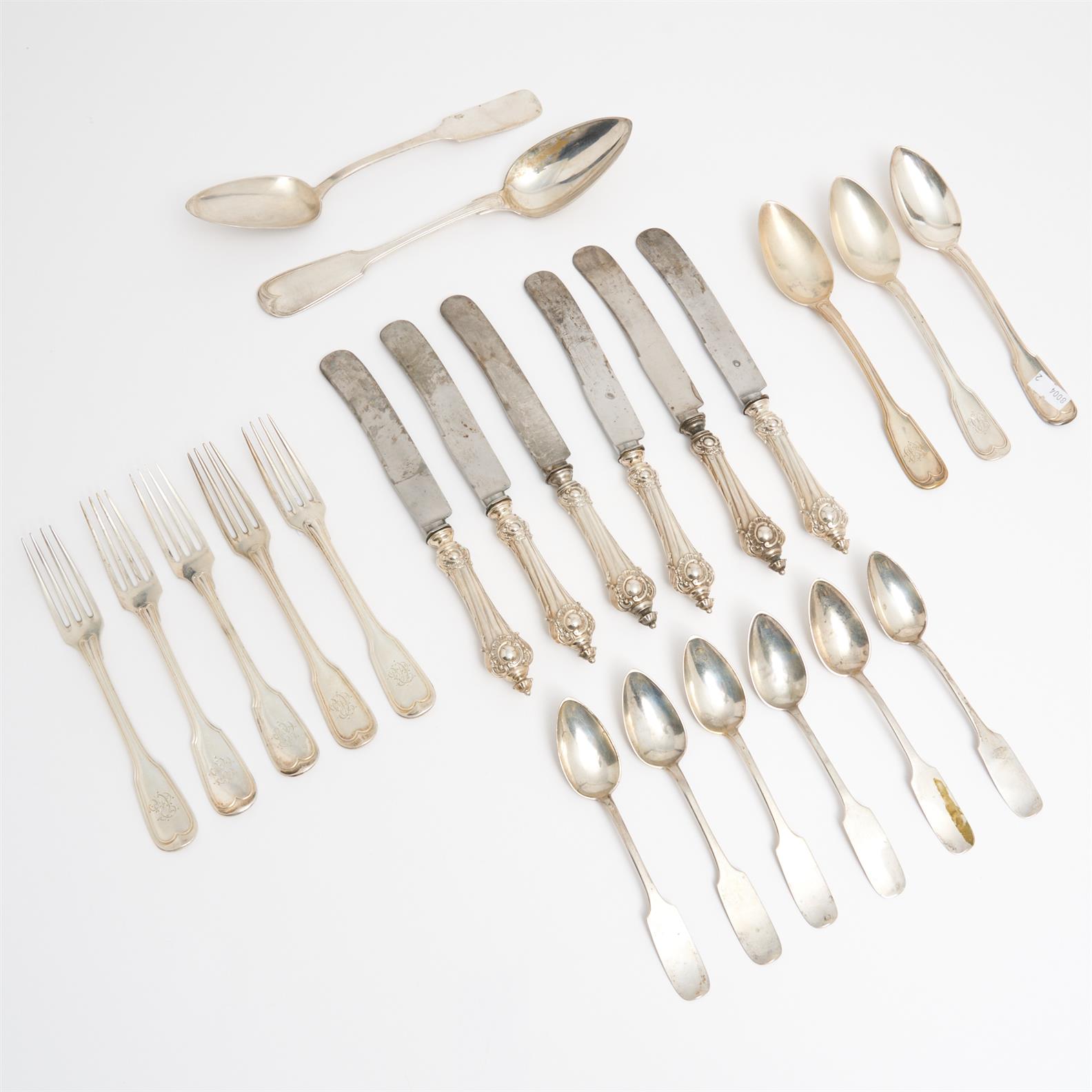 A COLLECTION OF ASSORTED FLATWARE AND KNIVES INCLUDING CONTINENTAL SILVER 476G (EXCLUDING KNIVES)