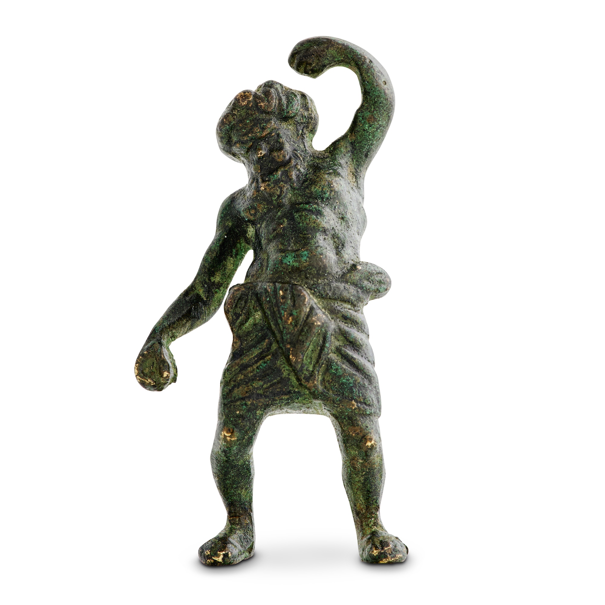 A SMALL BRONZE FIGURE OF DRUNKEN SILENUS