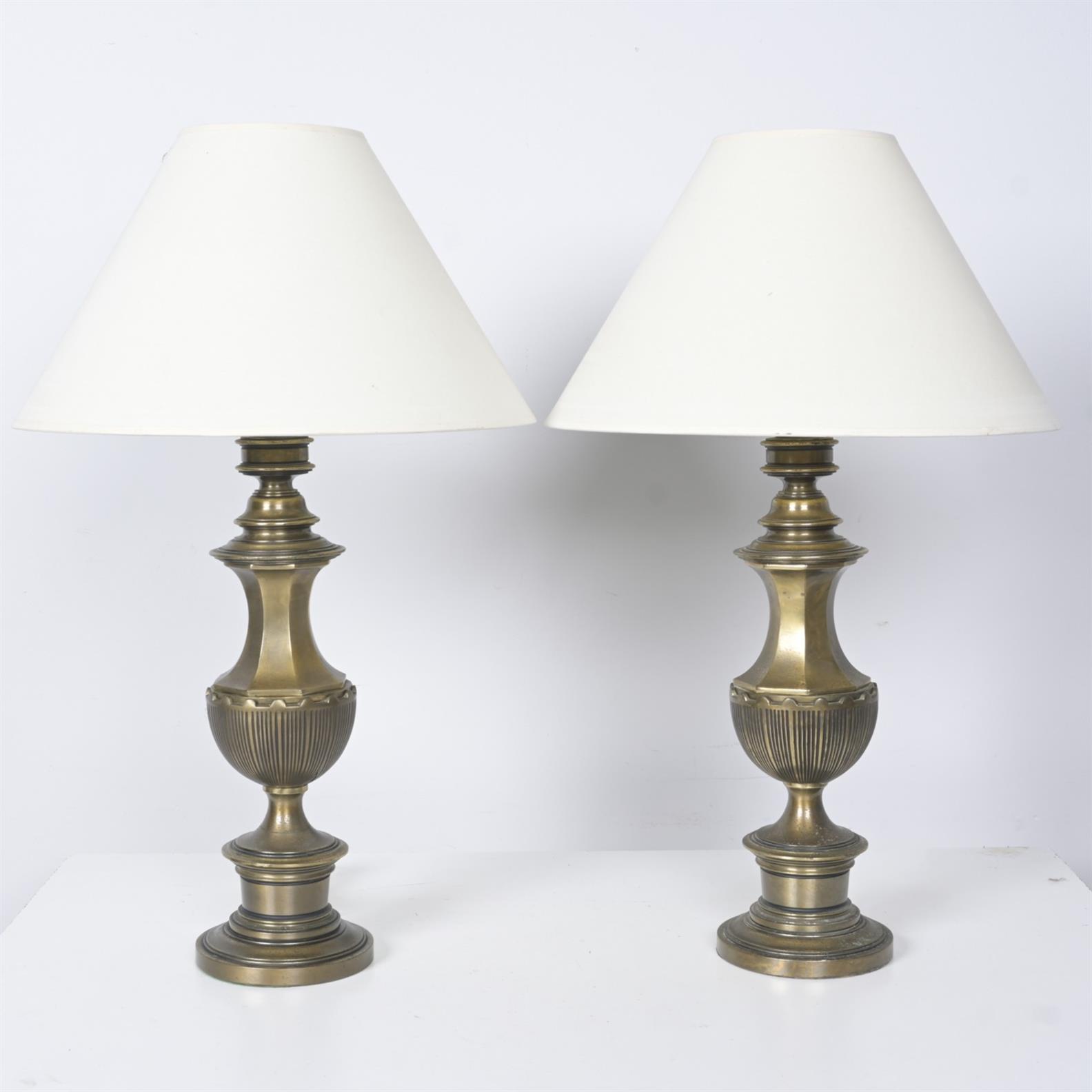 A PAIR OF BRASS TABLE LAMPS (86H X 44D CM)