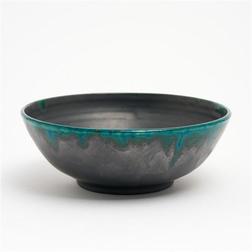 A GLADYS REYNELL SCRIFFITO FOOTED POTTERY BOWL WITH KOOKABURRA DECORATION, INSCRIBED TO BASE 1922 REYNELLA POTTERY S AUS W.10.5CM
