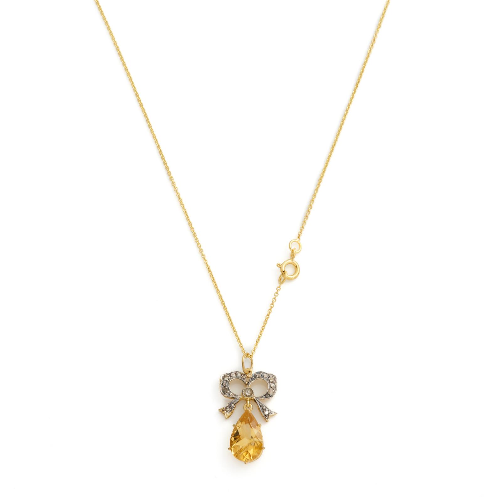 A CITRINE, MOONSTONE AND DIAMOND PENDANT IN SILVER GILT, CITRINE APPROXIMATELY 1.95CTS, DIAMONDS TOTALLING APPROXIMATELY 0.20CTS, APPROXIMATE LENGTH 400MM, 3.5GMS