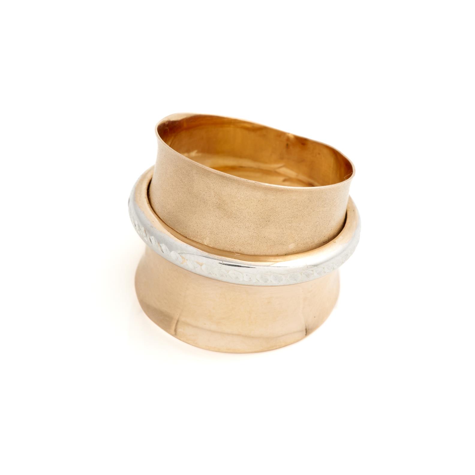 AN ITALIAN VINTAGE RING IN TWO-TONE 9CT GOLD, L1/2, 2.8GMS