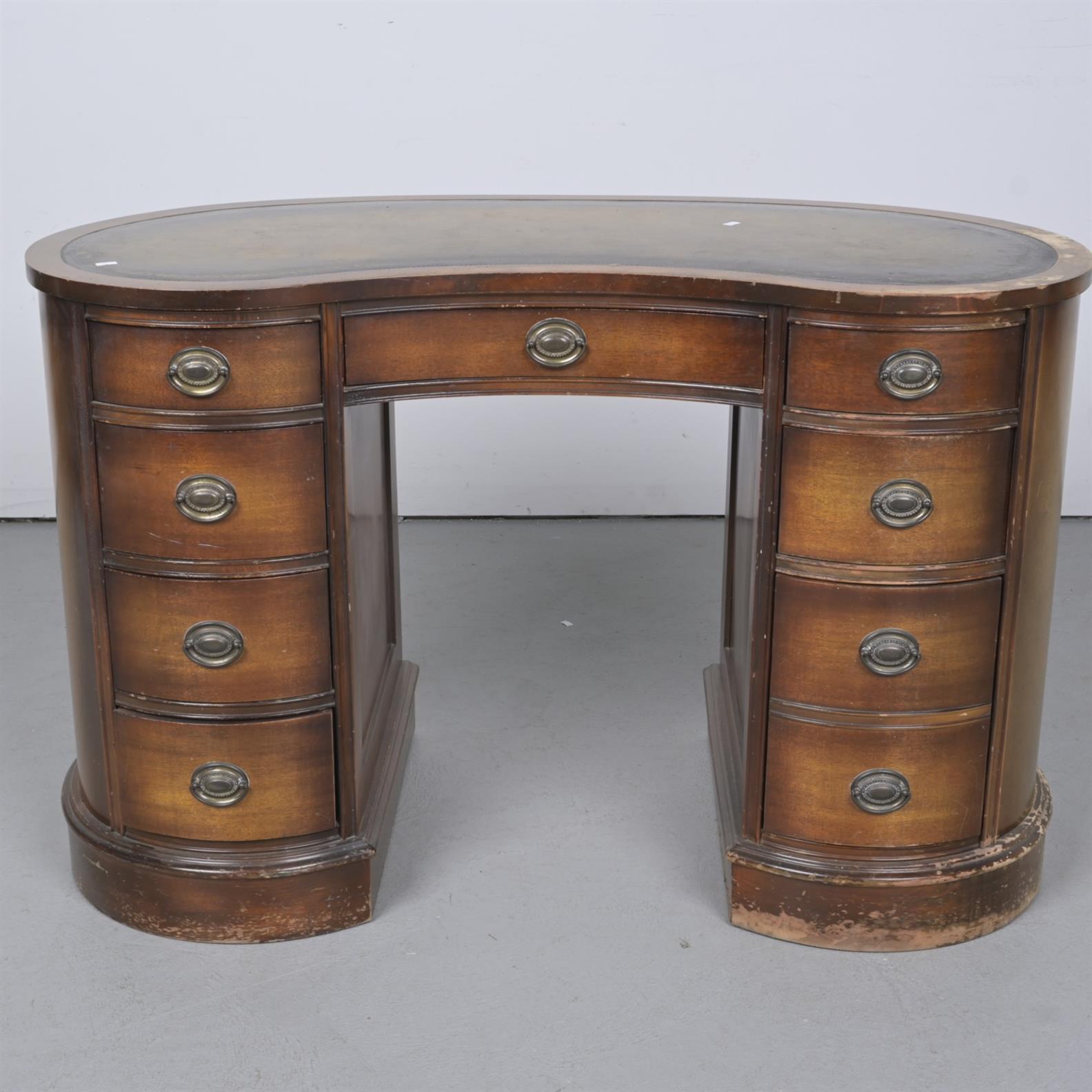 A DOUBLE PEDESTAL DESK WITH LEATHER INSET (75H X 117W X 55D CM ) (THIS ITEM MUST BE REMOVED BY CARRIERS AT THE CUSTOMER'S EXPENSE. LEONARD JOEL STAFF CANNOT ASSIST CARRYING THIS ITEM)