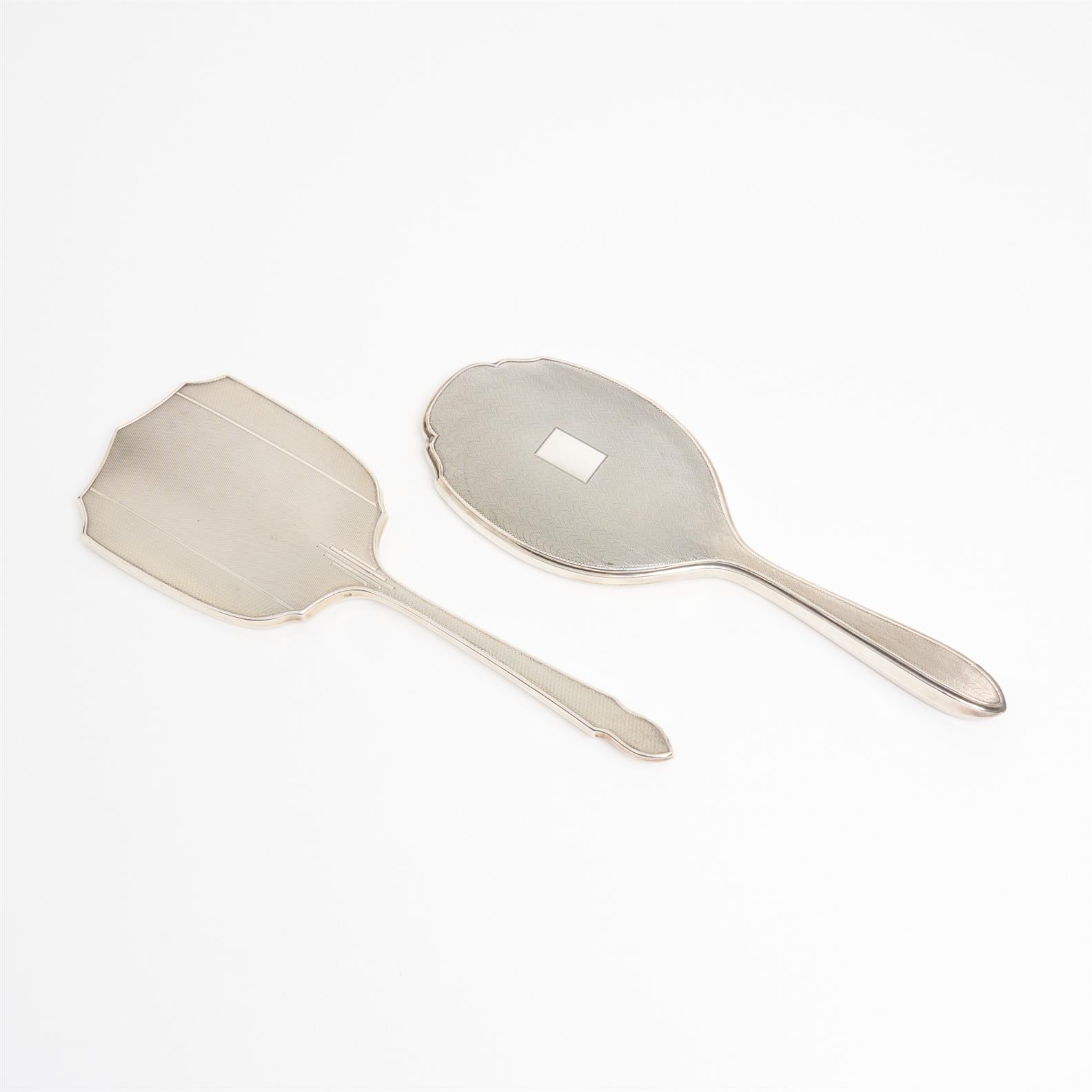 TWO STERLING SILVER MACHINE TURNED DRESSING TABLE MIRRORS L.28CM
