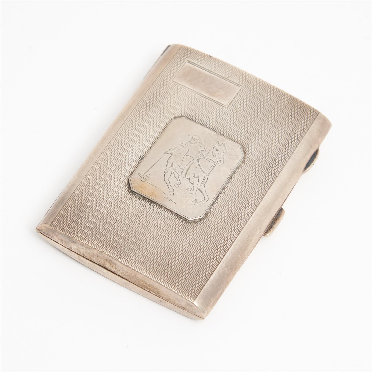 A STERLING SILVER CIGARETTE CASE WITH POLO ENGRAVING 66G L.8.5CM