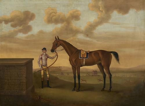 Extensively inscribed on the plinth to the left with the name of the horse, her pedigree, and details of her career in the latter half of the 1760s