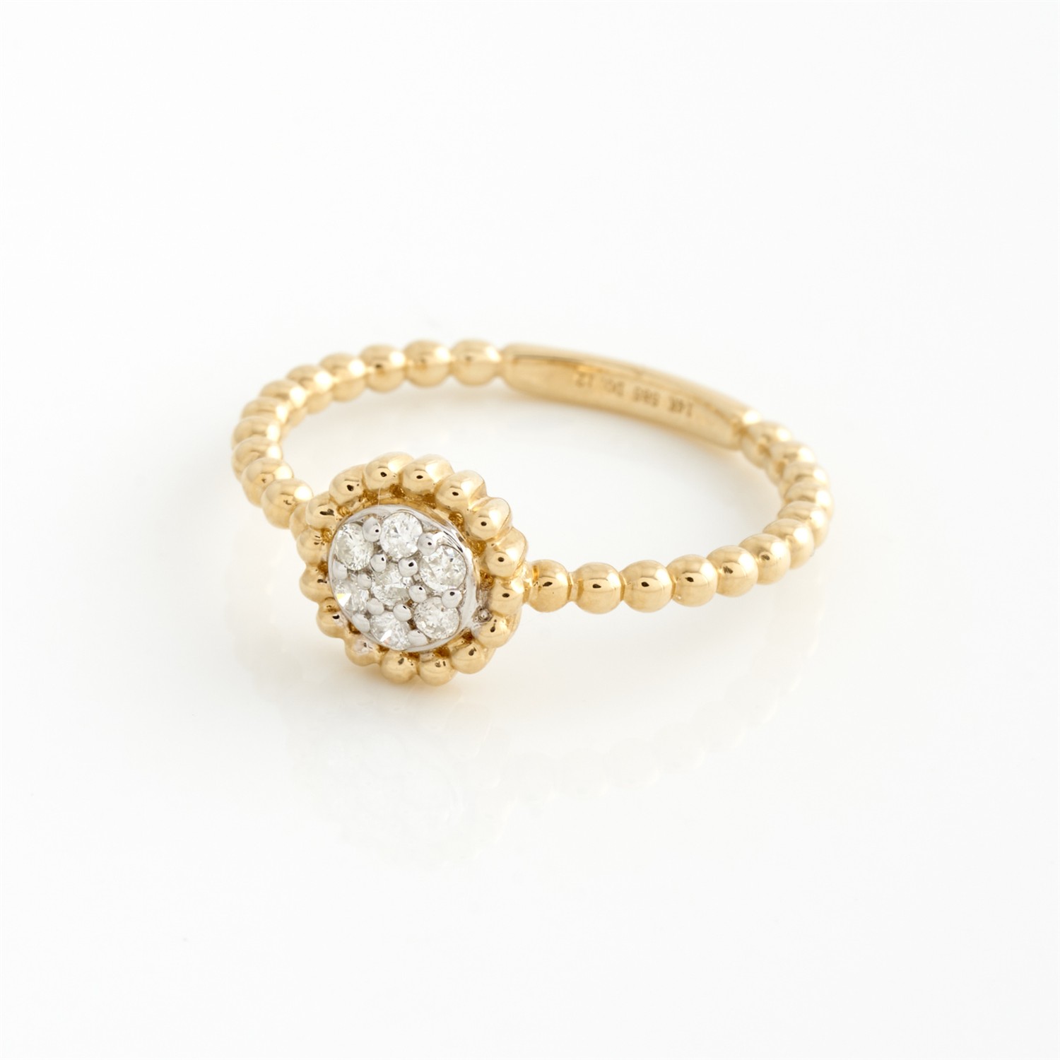 A DIAMOND RING IN 14CT GOLD, THE DIAMONDS TOTALLING APPROXIMATELY 0.12CTS, SIZE O, 2.8GMS