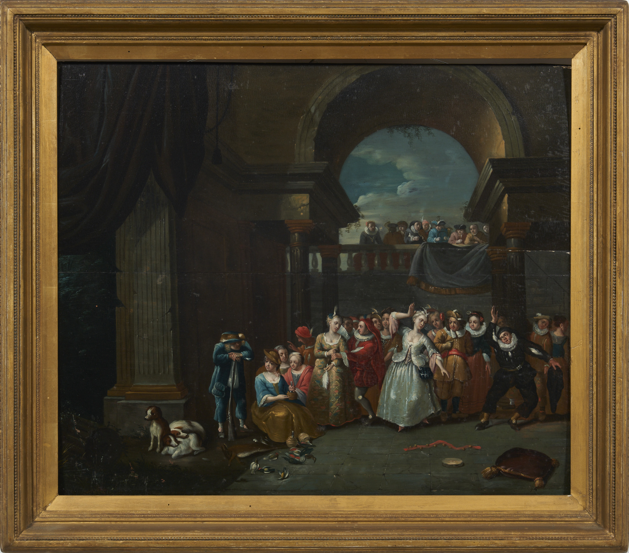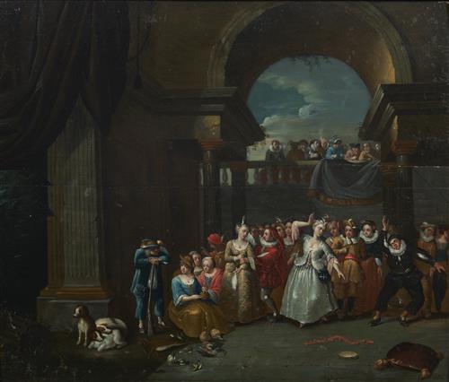 At least two other versions of this composition have come to auction in the past three decades: one catalogued as being by Jacob Andries Beschey (1710–1786) sold in 2000 (Drouot-Montaigne, Tableaux anciens, important mobilier francais du XVIIIe siecle, Paris, 27 April 2000, lot 151, oil on panel, 49 x 54 cm – sold 100,000 Fr. francs); and another offered in 2019 as one of a pair of similar compositions attributed to an unidentified early eighteenth century Flemish painter (Bonhams, Old Master Paintings, London, 23 October 2019, lot 149, oil on canvas, 53 x 62cm – not sold).