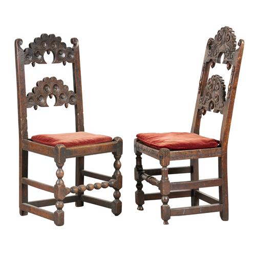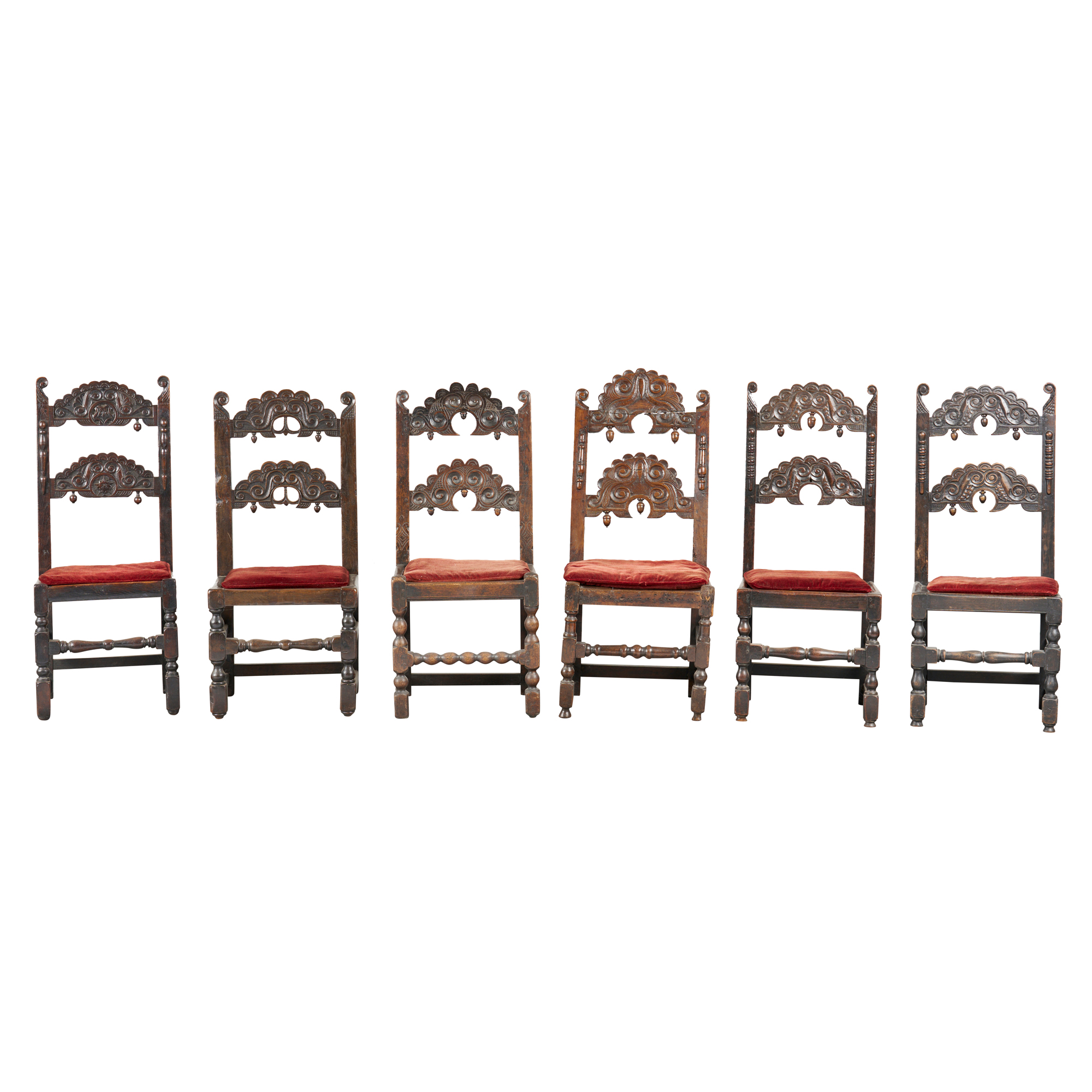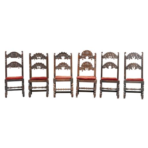 A GROUP OF SIX SIMILAR CHARLES II OAK BACKSTOOLS