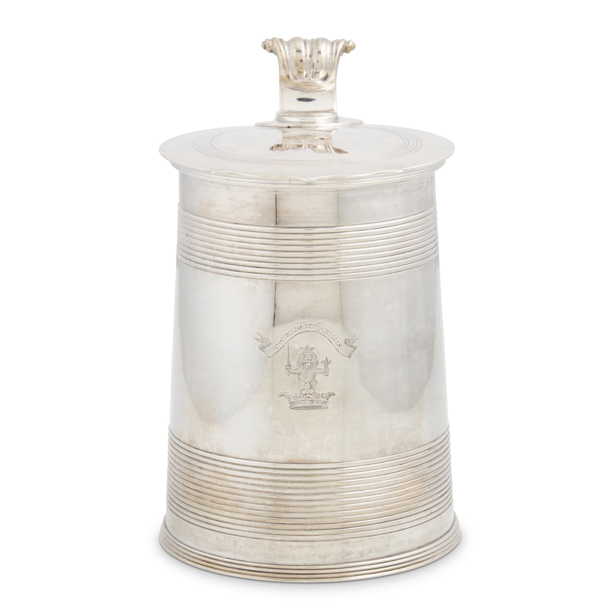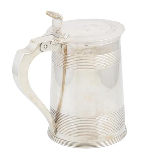 A GEORGE III STERLING SILVER COVERED TANKARD