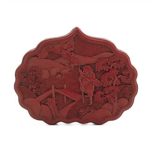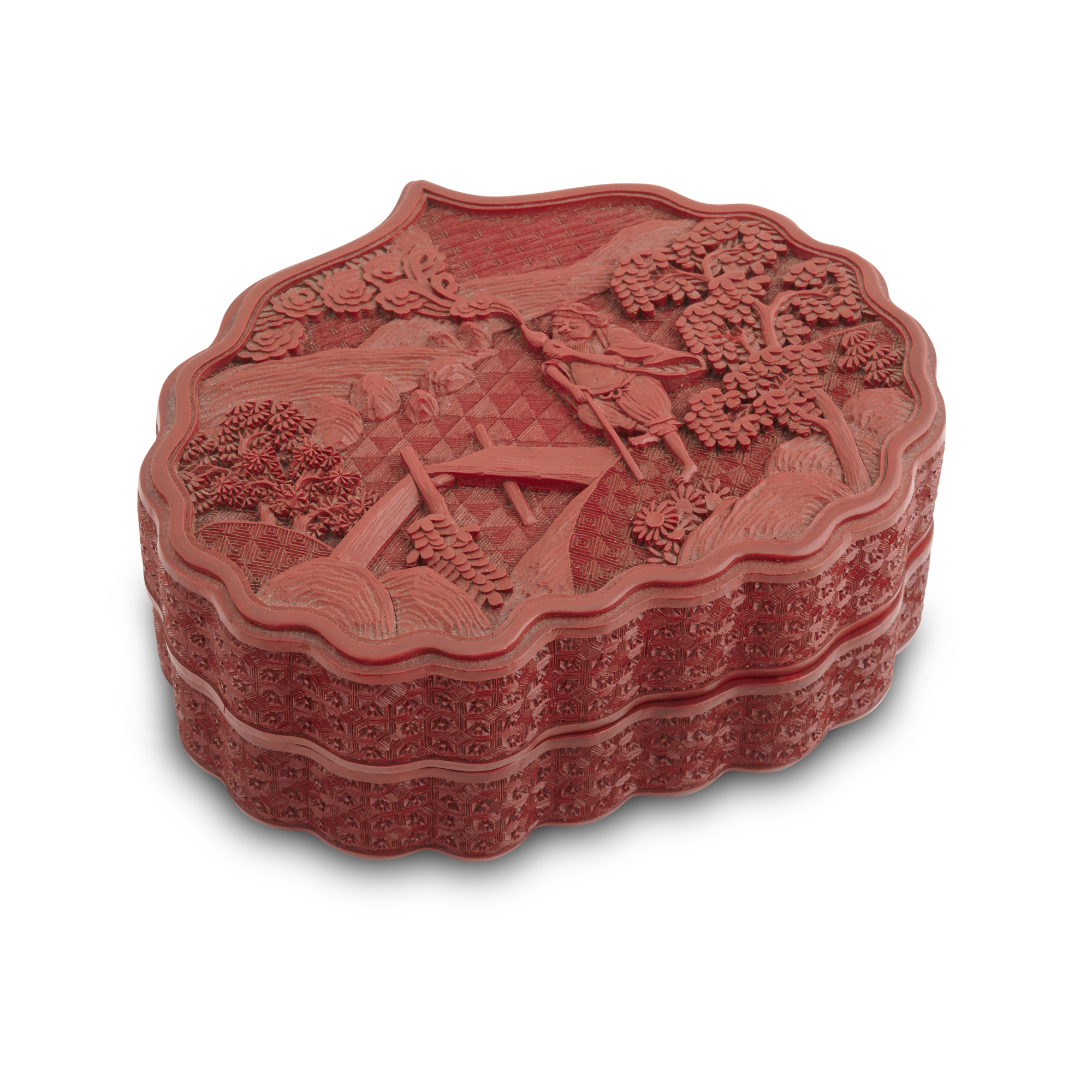 A FINE CHINESE CINNABAR CARVED LACQUER RUYI FORMED BOX AND COVER, QIANLONG PERIOD (1736 - 1795)