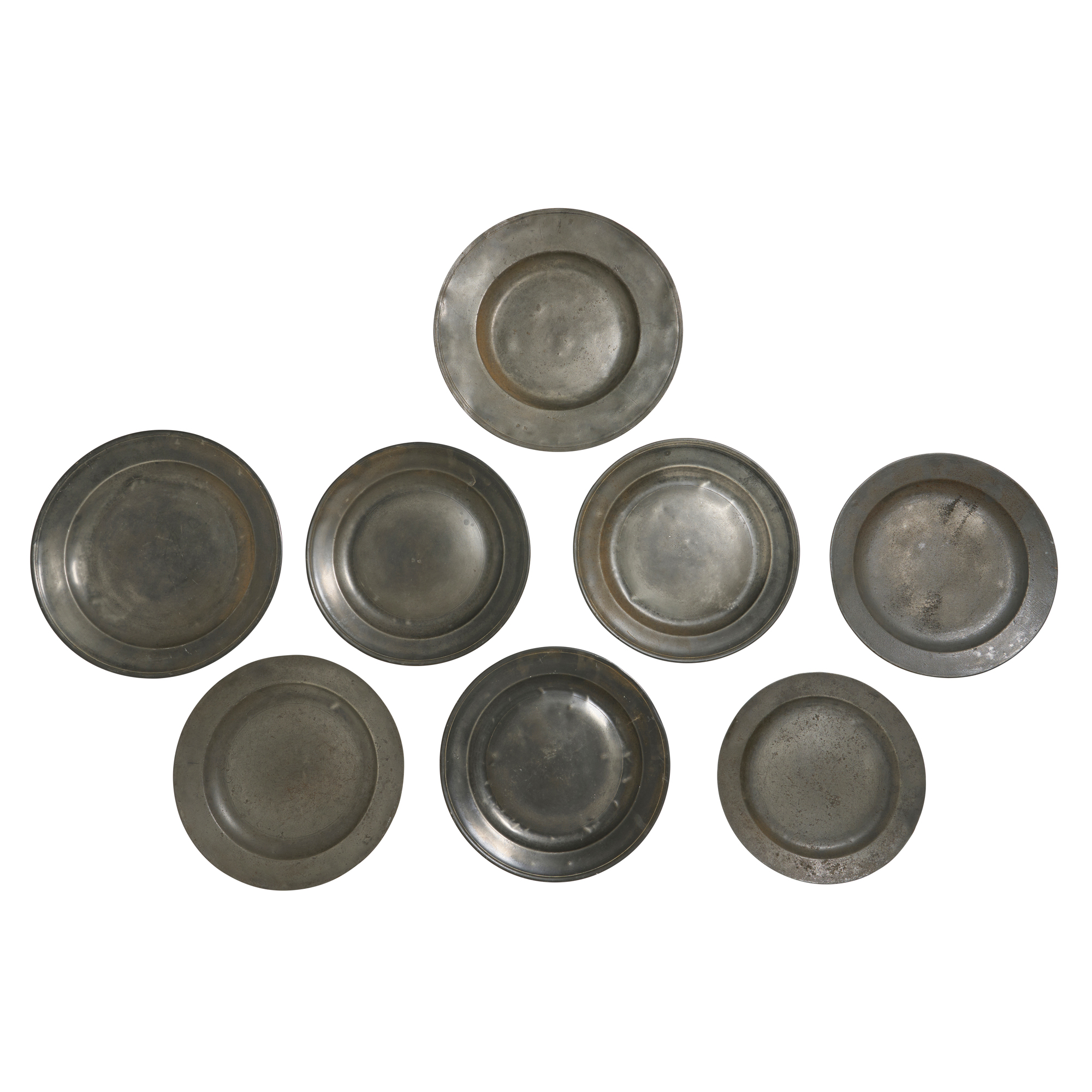 A GROUP OF EIGHT ANTIQUE PEWTER CHARGERS