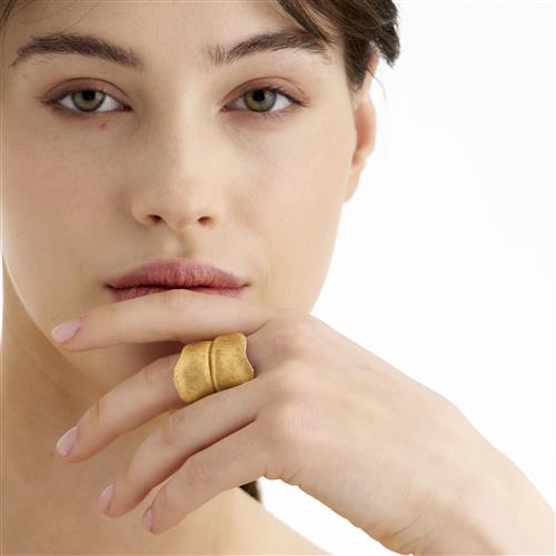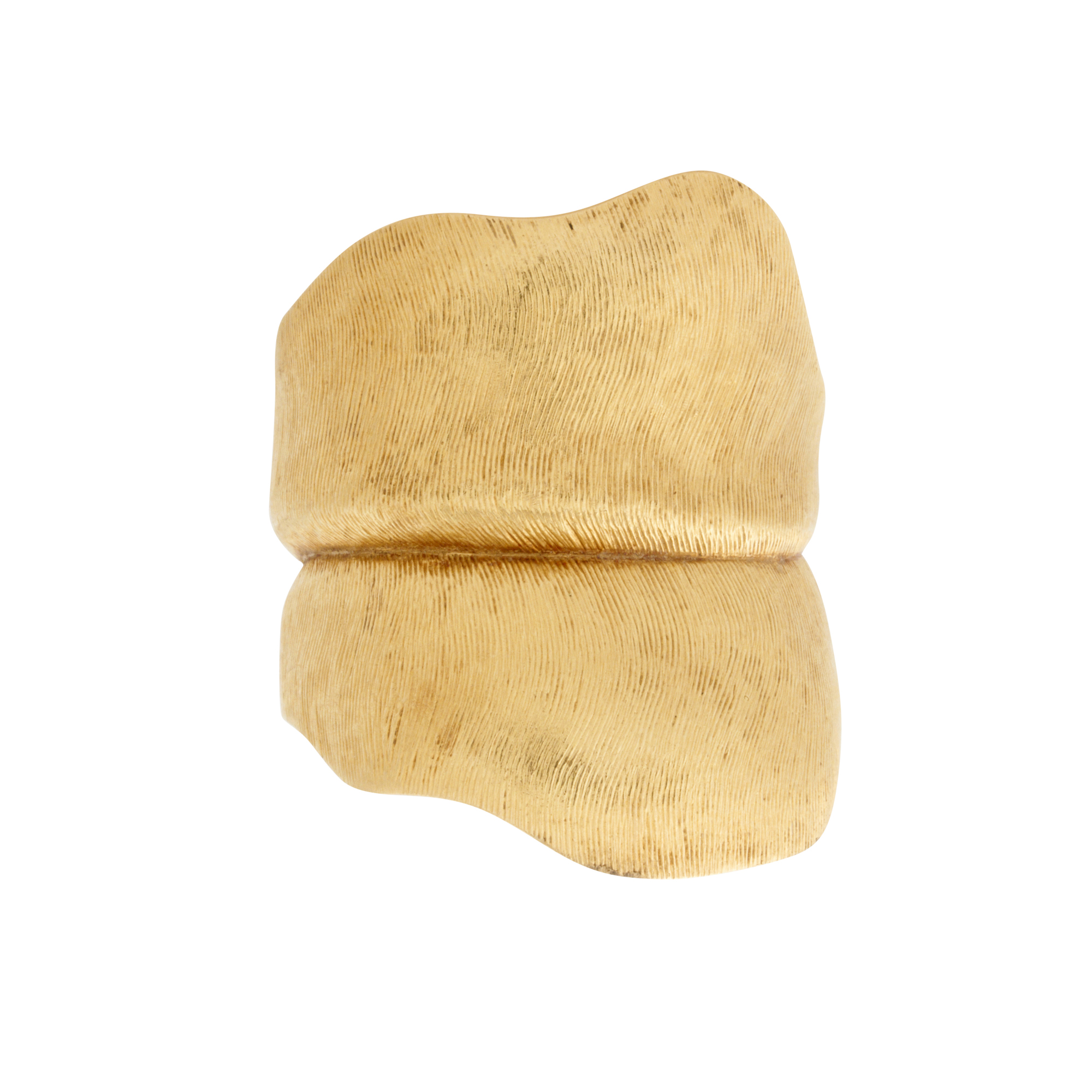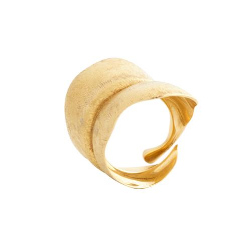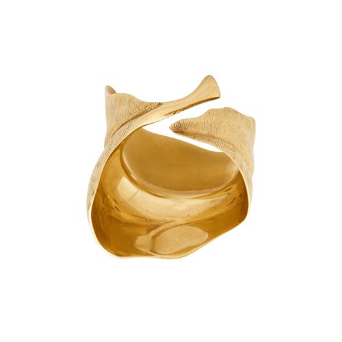 Modelled as a leaf in textured gold finish, signed OleL for Ole Lyngaard, size N-O, gross weight approximately 17.0 grams.